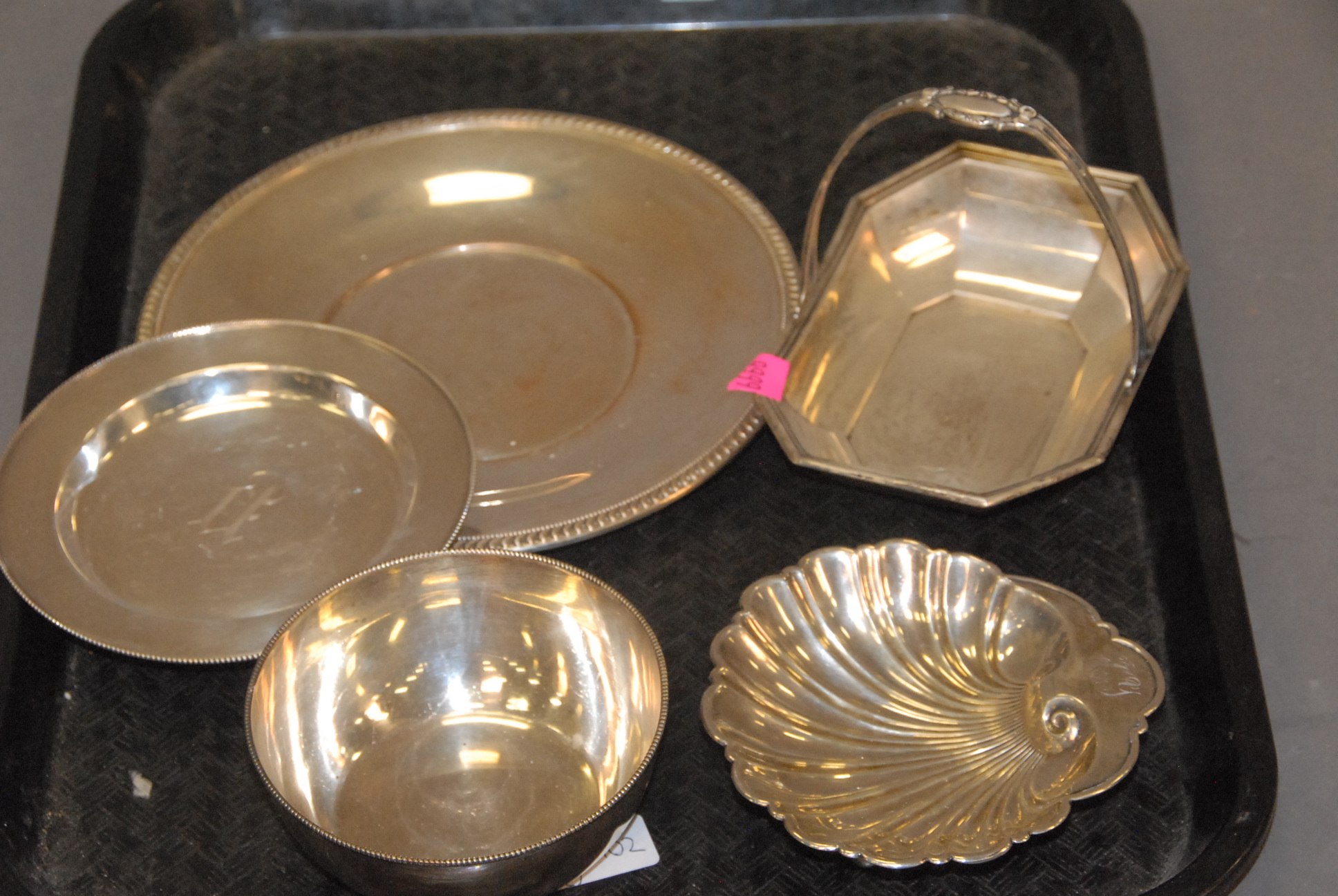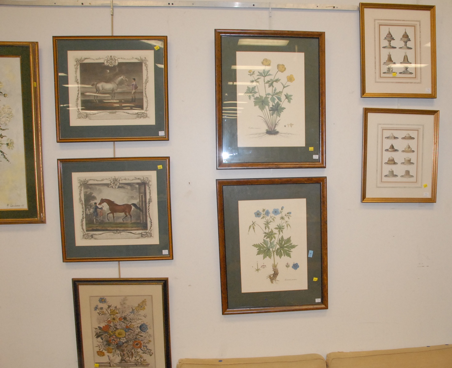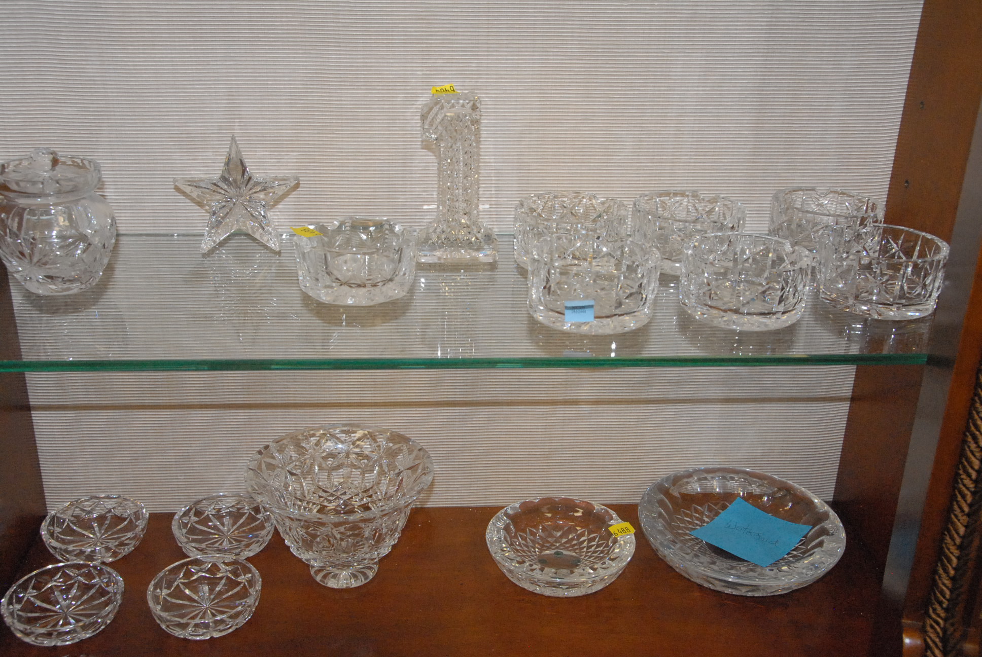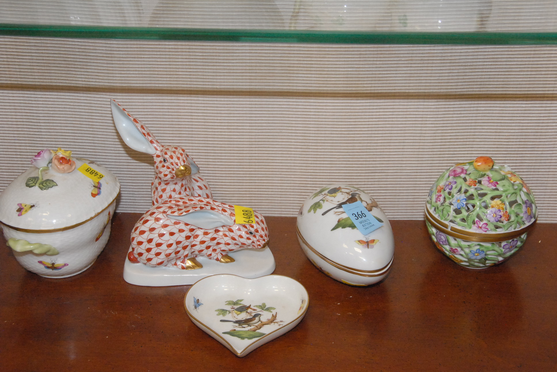 Six box lots creamware, Staffordshire birds, bowls, Royal Doulton dog, small lift top box, Oriental bowl, two Oriental plates, two pewter serving pieces, etc.