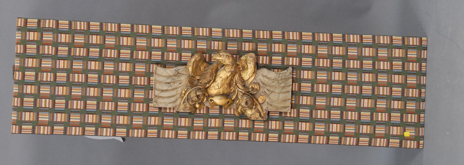 Checkered upholstered board mounted with gold gilt eagle. Provenance: property from a home in Rockville Center, New York which was decorated by Iris Apfel.