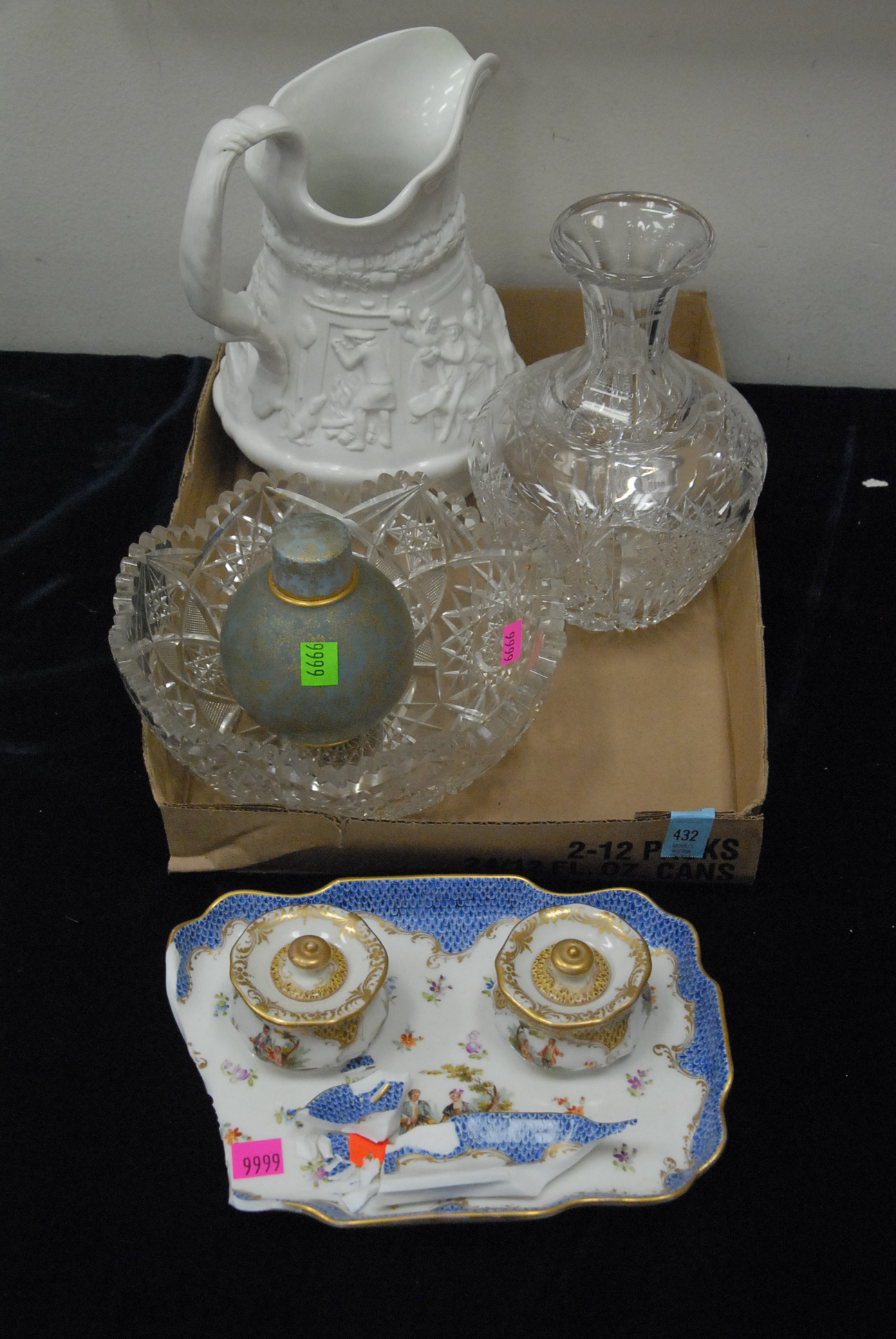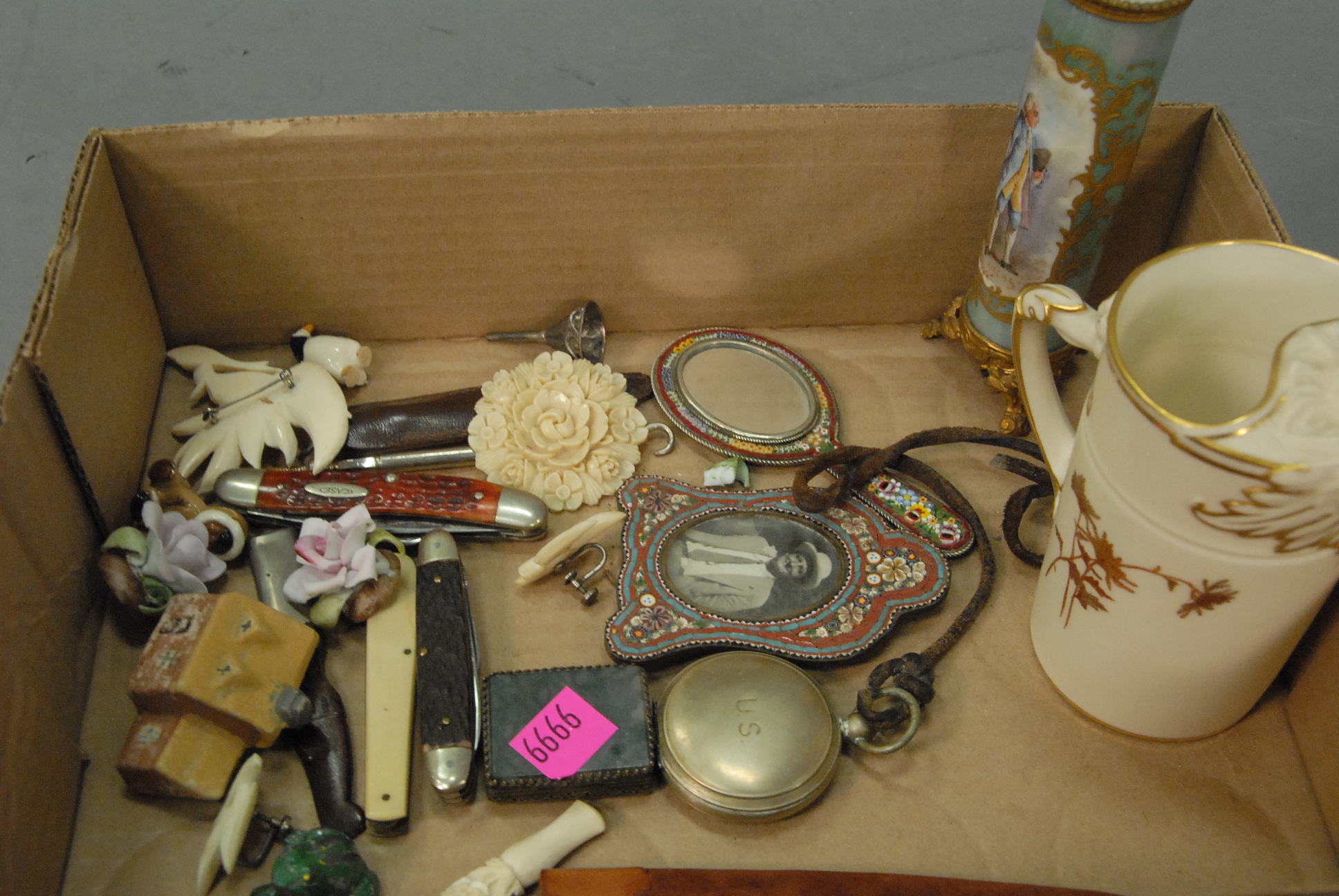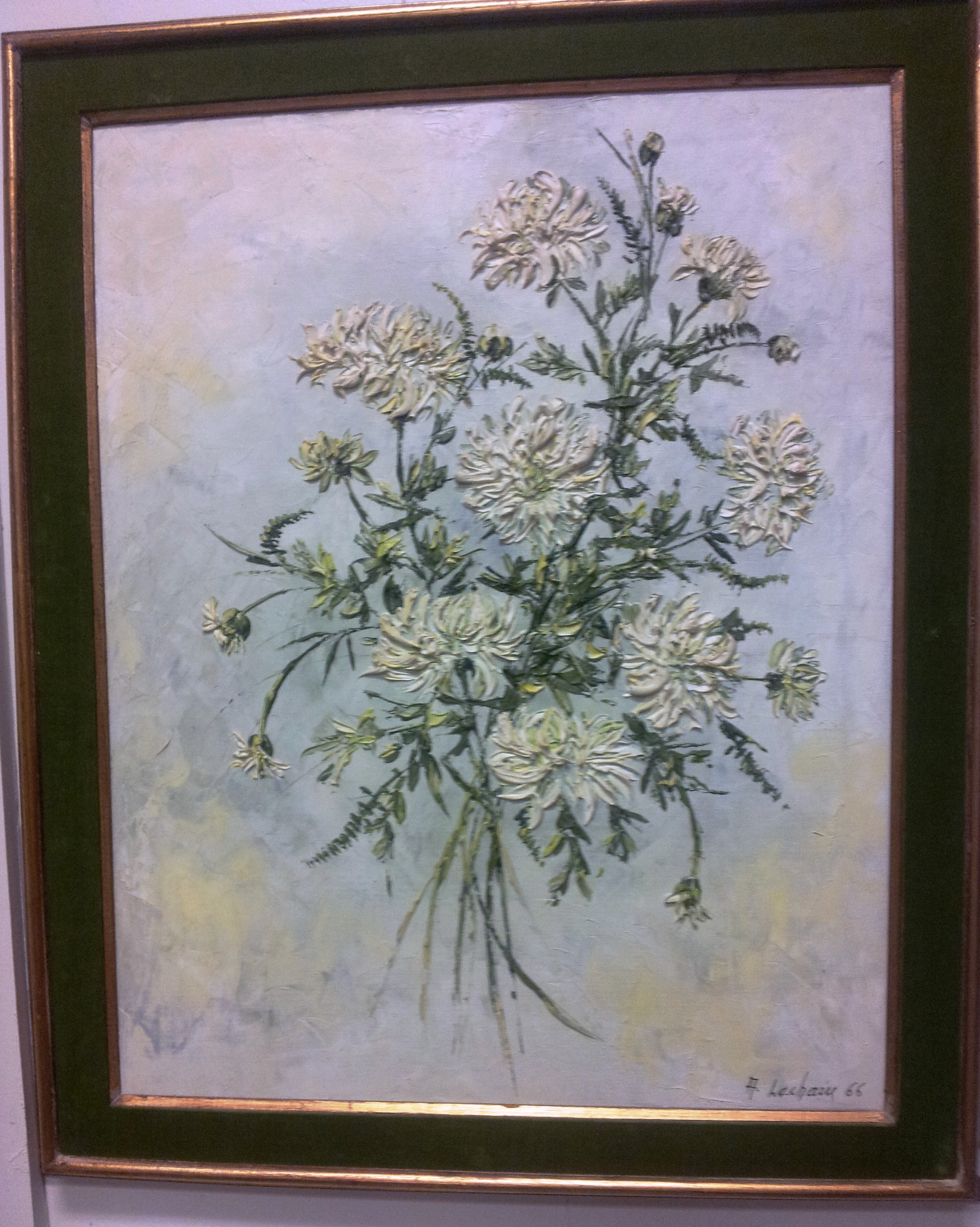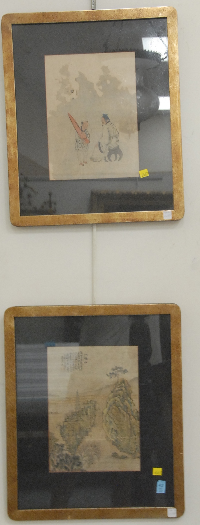 Group of five prints and painting to include Paul Zimmerman 1921-2007 watercolor landscape, 11 1/2 x 15, decorative of of chickens, etching signed Perh , 1906, 15/50, 10 1/2 x 9, Oil on canvas signed lower right Candies, and a small watercolor of a house. Provenance: Estate of Judy Gengras McDonough of West Hartford, CT.