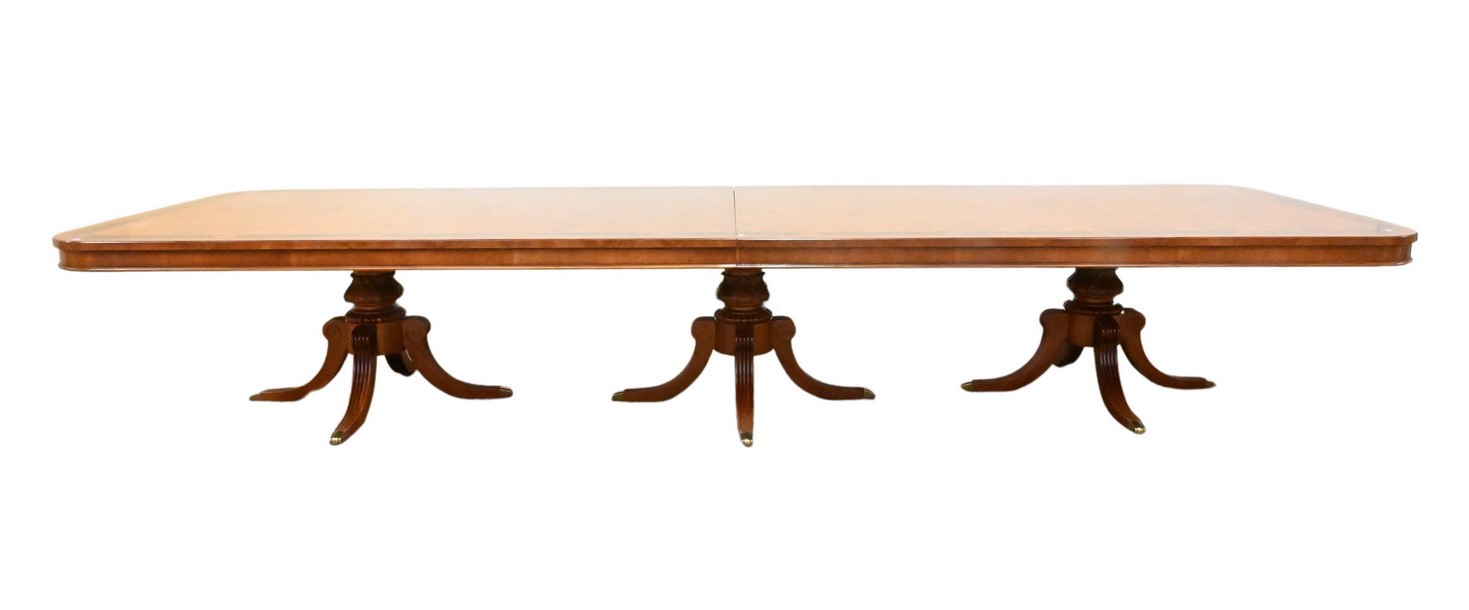 Burlwood Triple Pedestal Dining Table