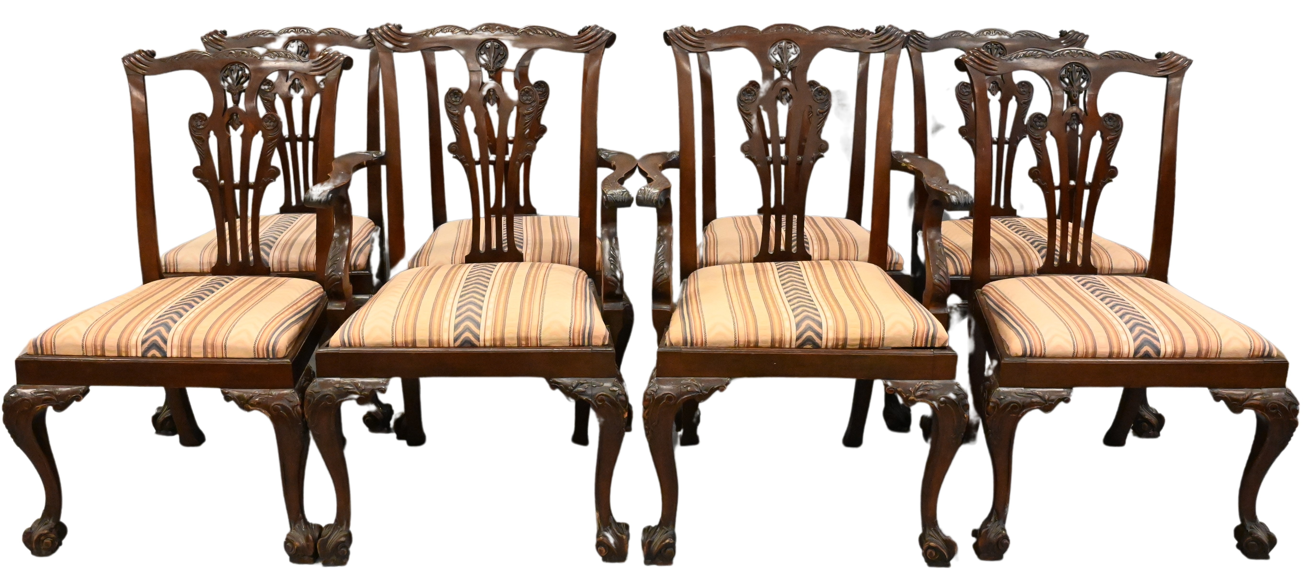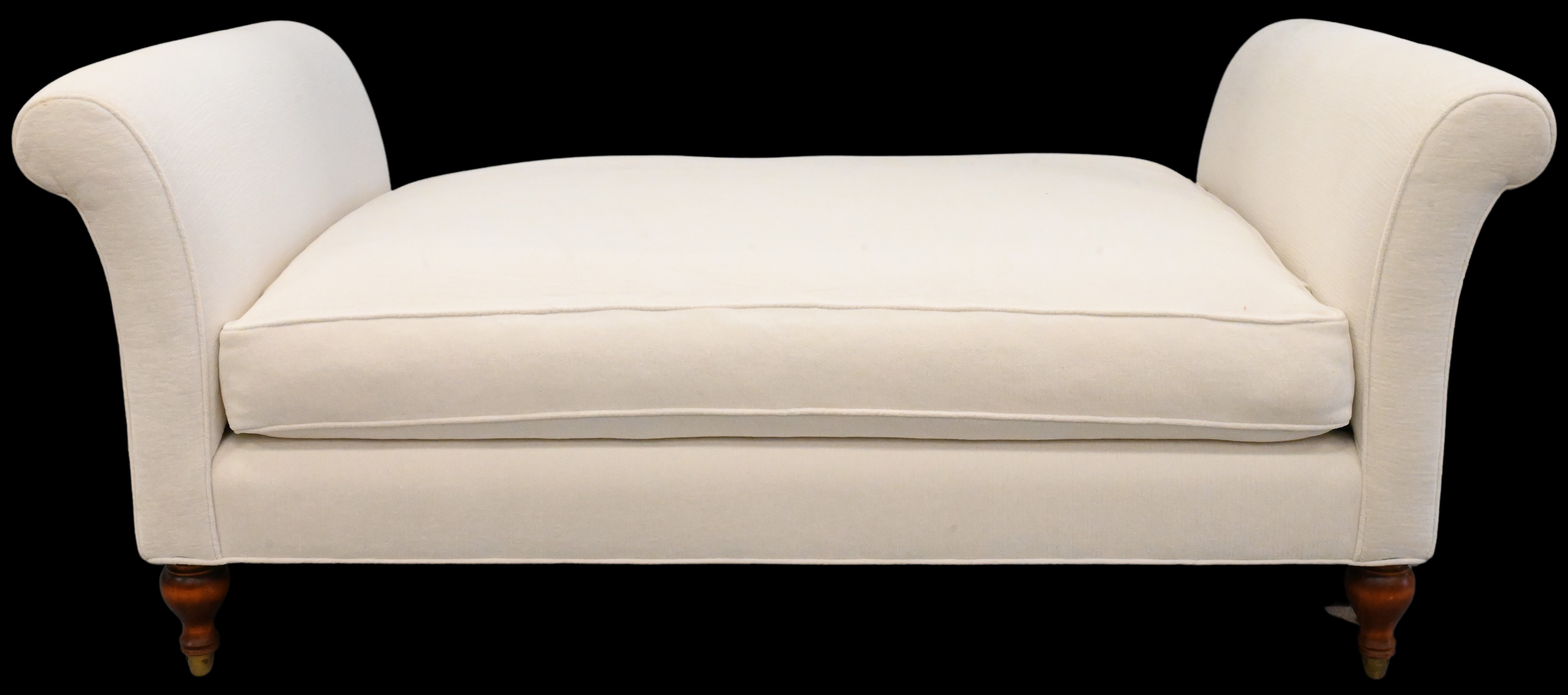 having white upholstery set on turned wood legs