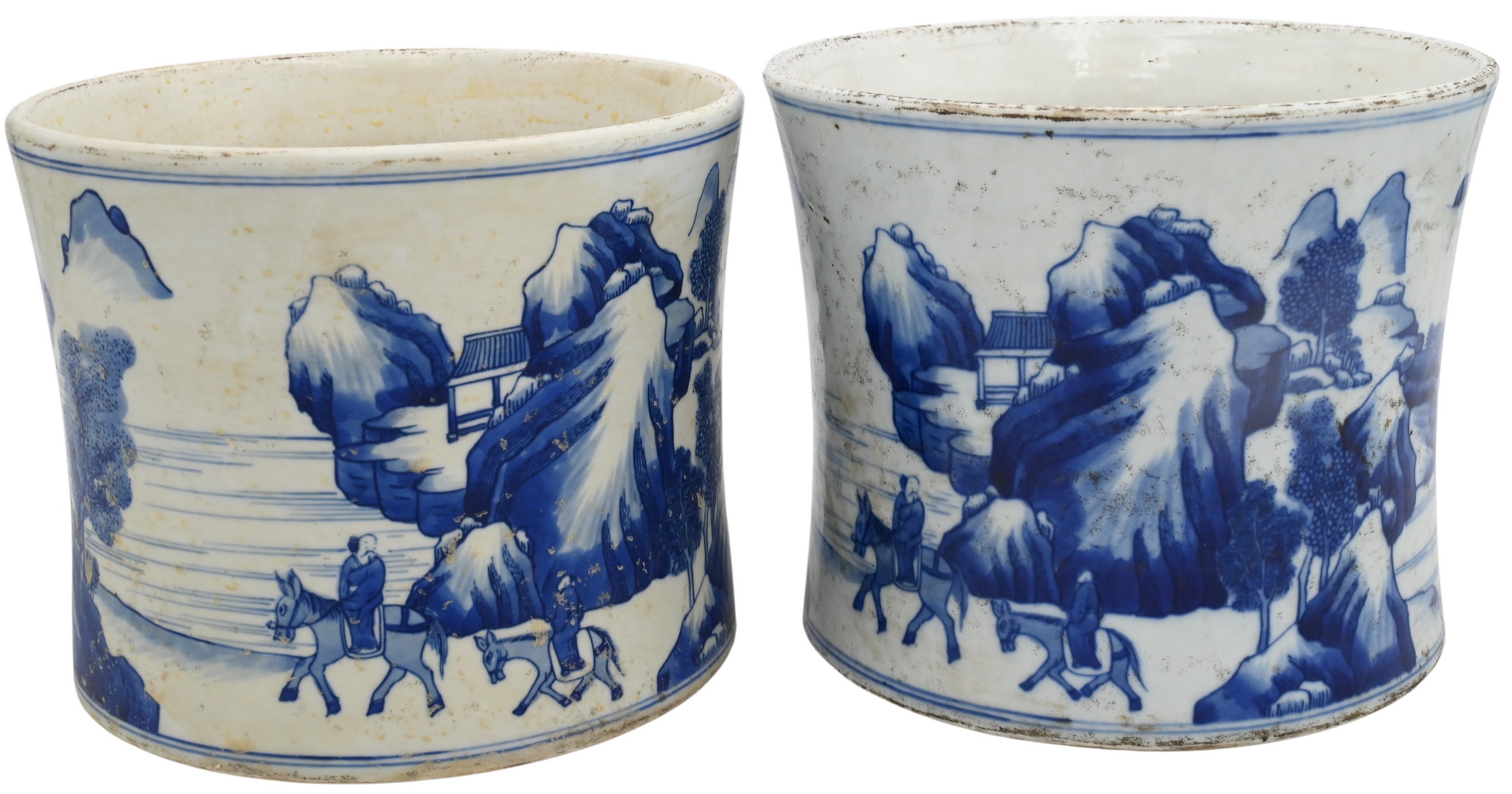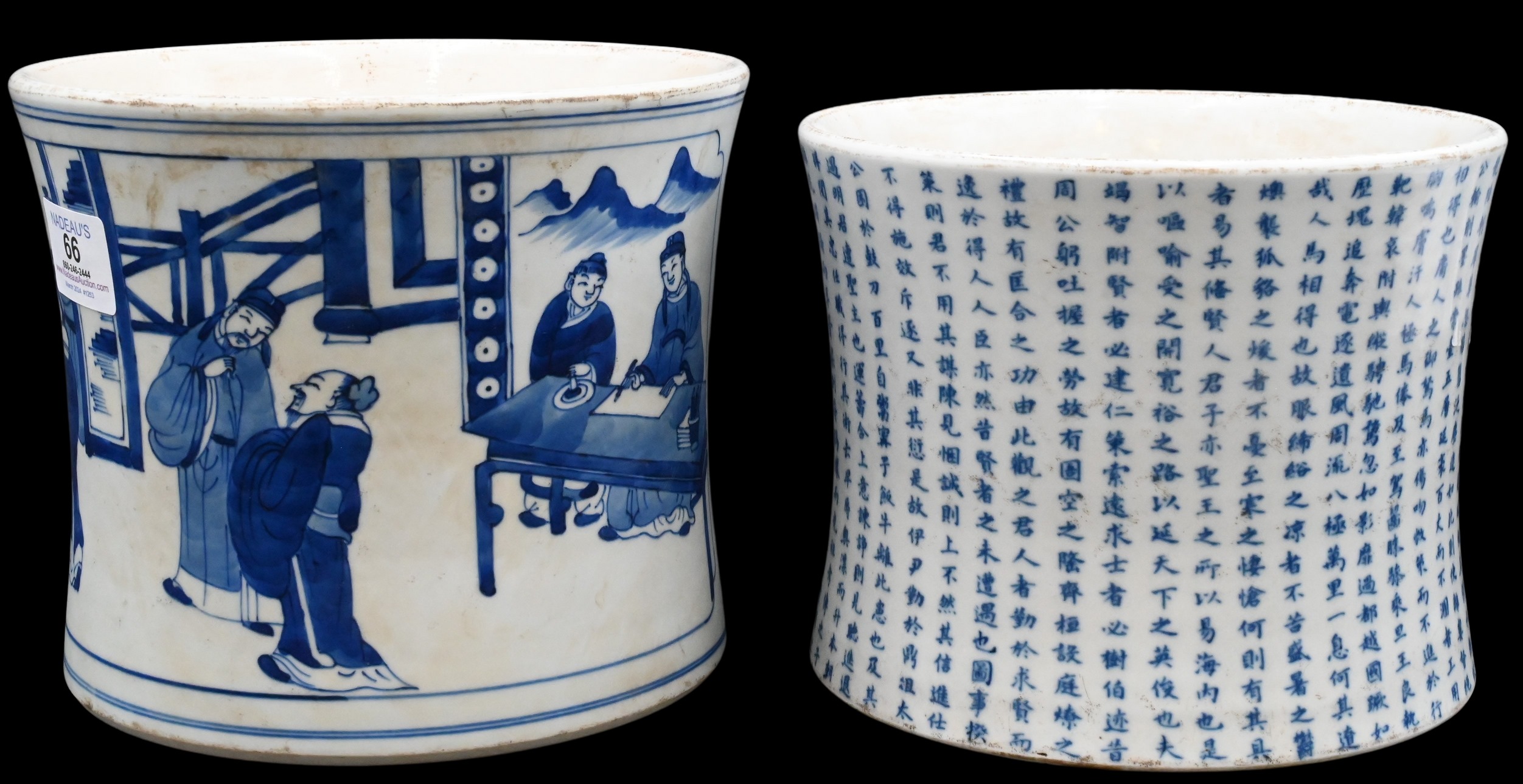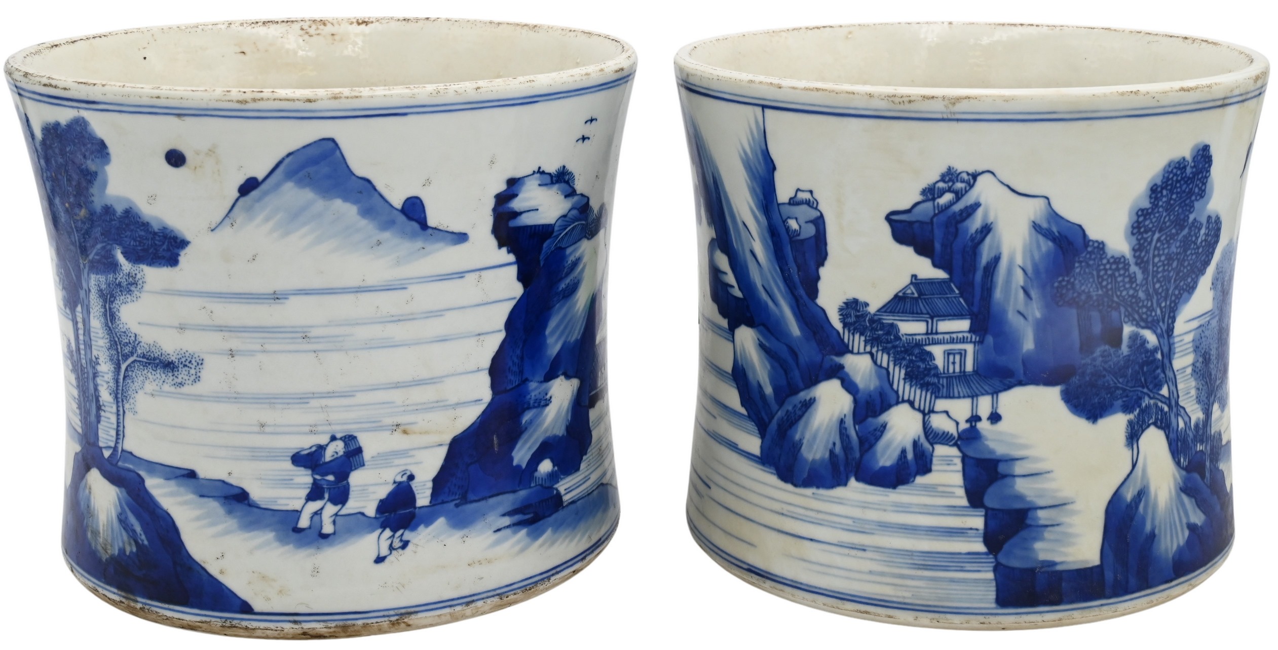 Two Chinese Blue and White Porcelain Brush Pots