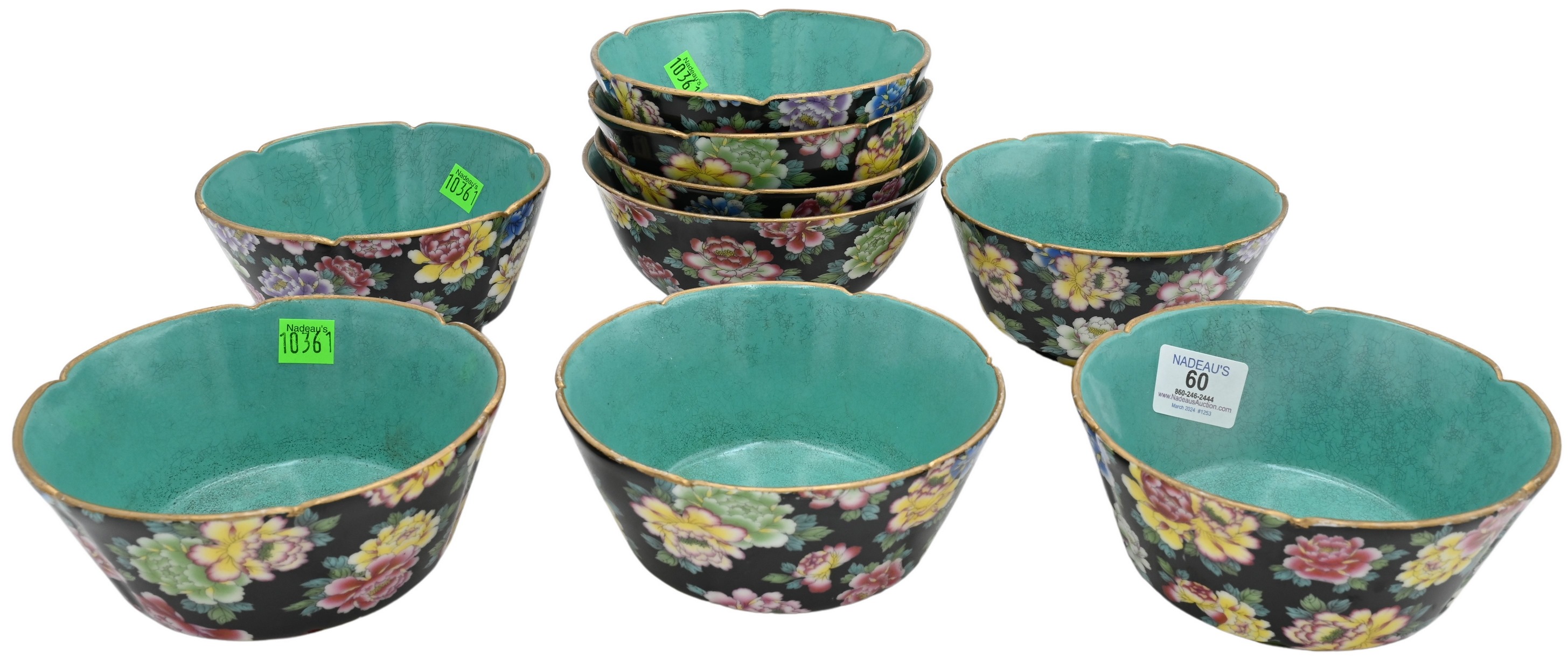 Nine Chinese Famille Noire Porcelain Bowls