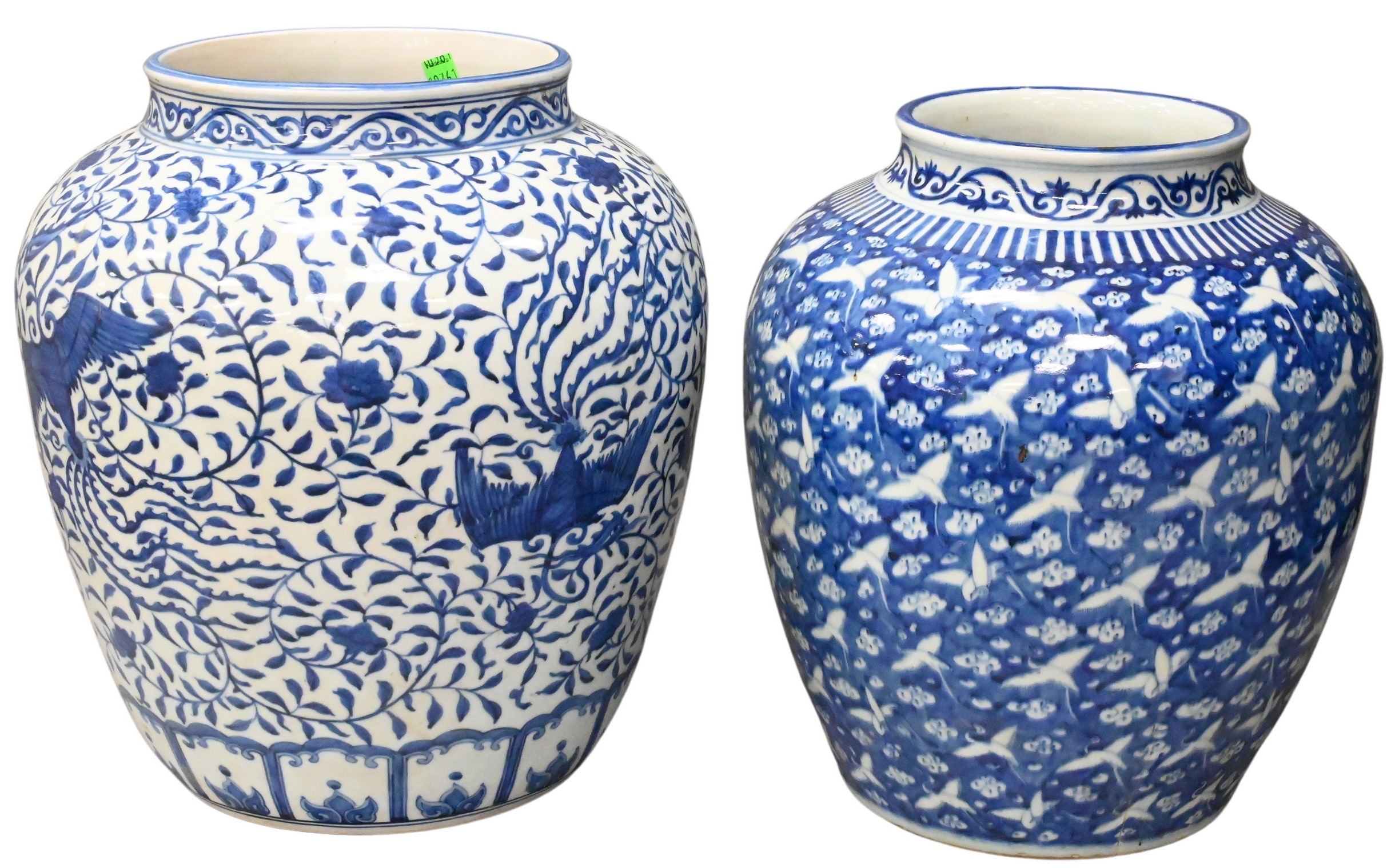 to include one having crane motif, character marks to base (cracked), one having phoenix motif, character marks to neck