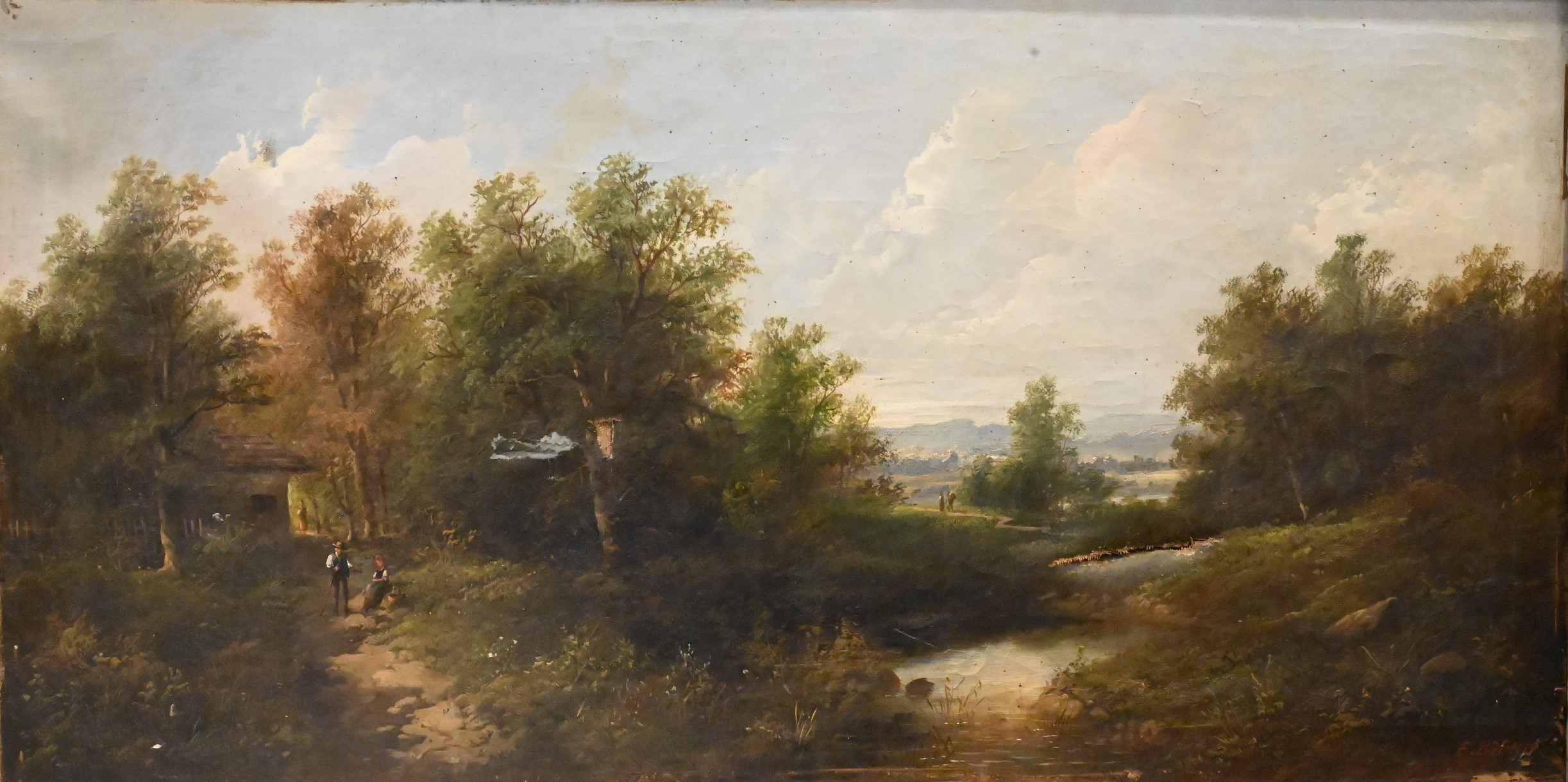 Condition: in need of restoration, large tear lower right, small tears lower left, craquelure, paint flaking, edgeware