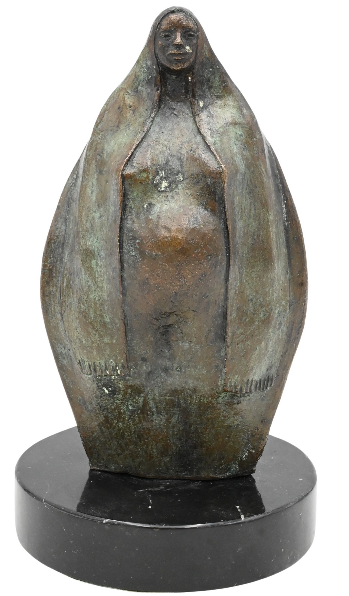 Figure with draping over head