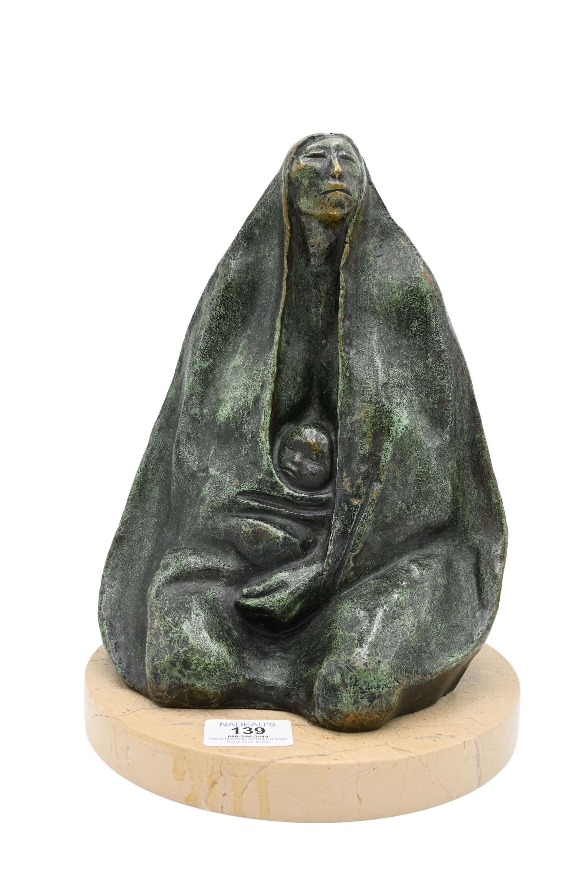 Bronze on marble base of reclining figure with child