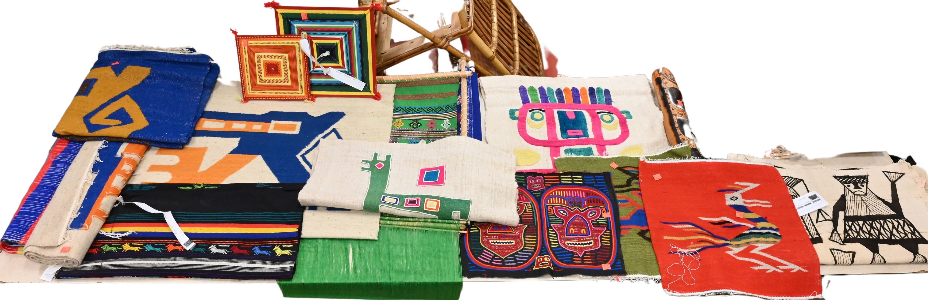 to include “Types of Facial in Makeup Chinese Opera”, assorted textiles, Chinese cut paper book, Peruvian gourd snake rainmaker,