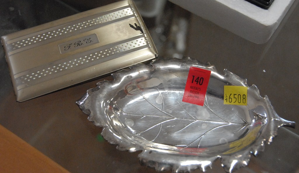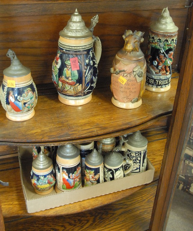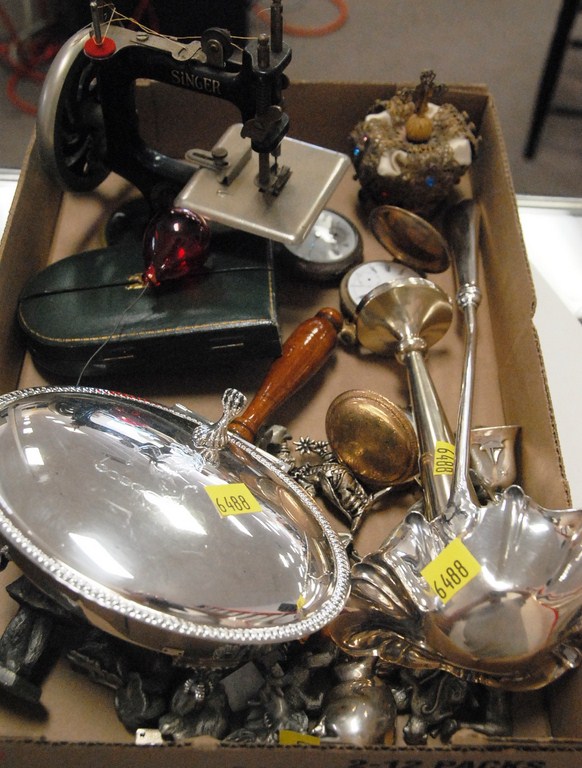 Group of six cast metal figural pieces blue heron bird standing on tortoise, candlesticks, pair of vases with vines and birds, monkey with basket, and a decorative inkwell. Provenance: property from a home in Rockville Center, New York which was decorated by Iris Apfel.