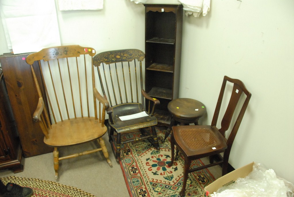 Group of miscellaneous items wine glasses, wine bottle opener, two vases, three rolls of seal wrap in a basket, and fireplace tools. Provenance: Estate of Judy Gengras McDonough of West Hartford, CT.