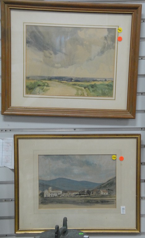 Two watercolors, Town’s Edge and Rainy Landscape J. W. Harbolck and Eric Horsnell.