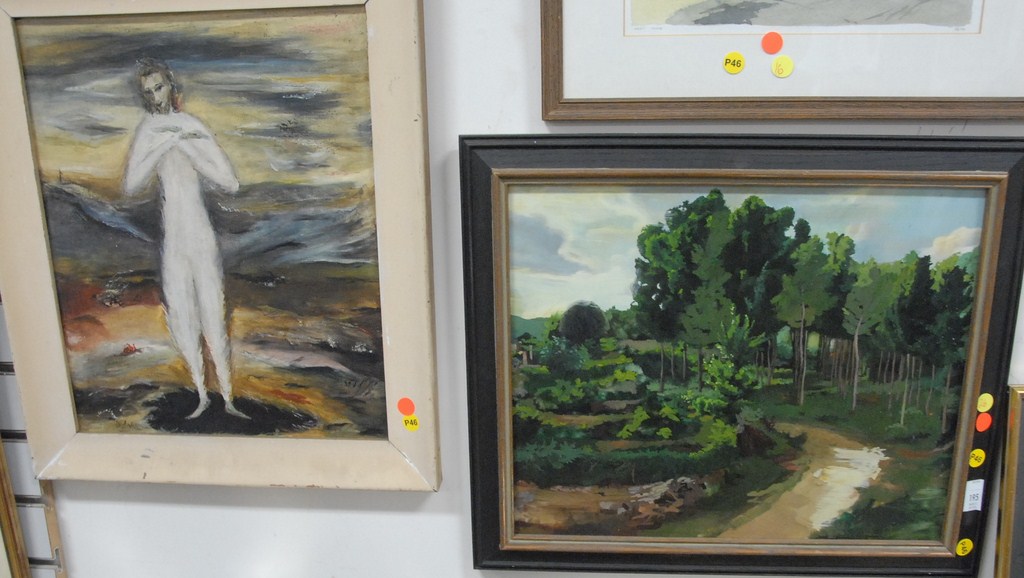 Two oil on canvas signed John Jacobmeyer and Windy Day signed Sylvia.