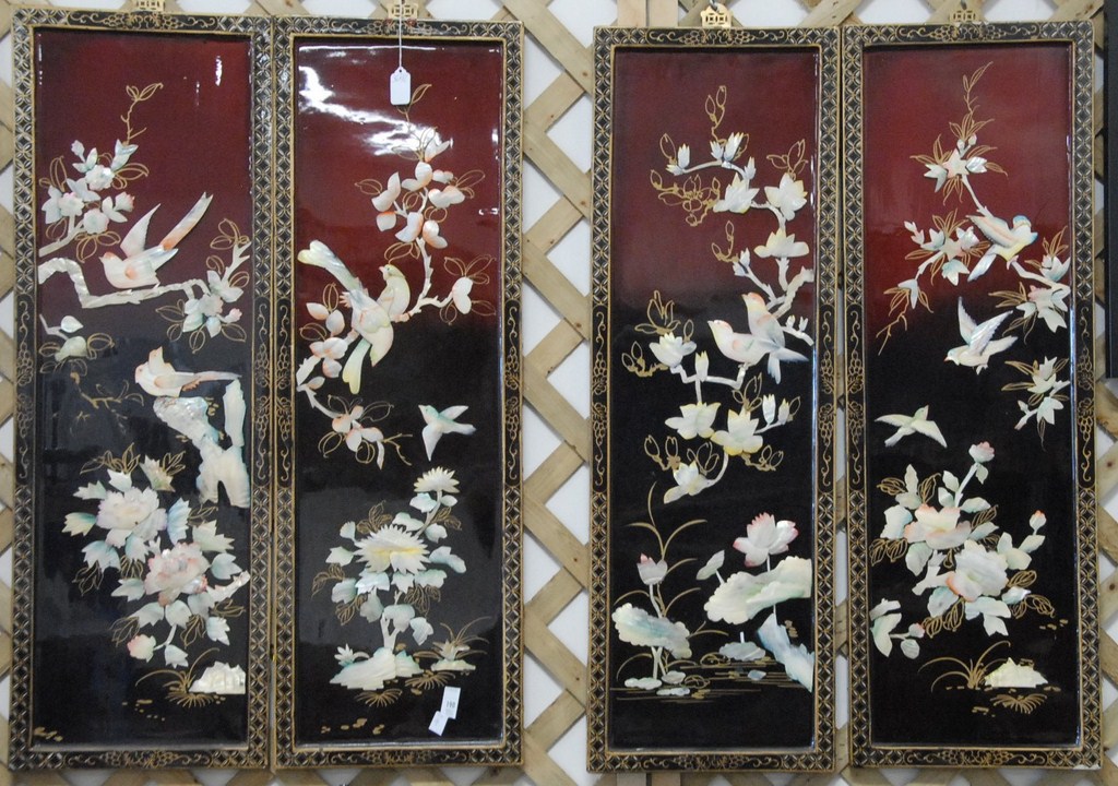 Four Oriental three dimensional wall hangings, 12 x 36.