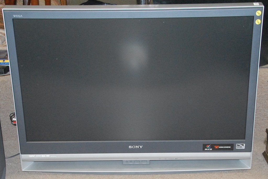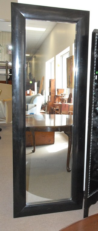 Large dressing mirror with wide black frame, ht. 79, wd. 27 1/2.
