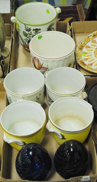 Three box lots two basket style pieces, Irish Belleek vase, hand painted vase, Lenox vase, black and white Spode urn etc.