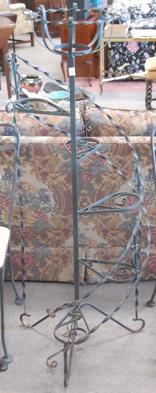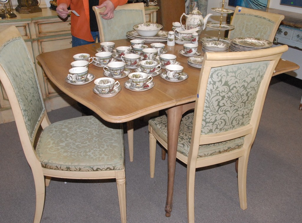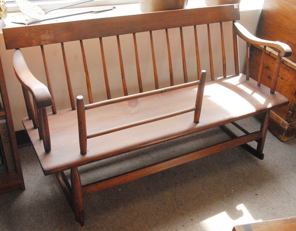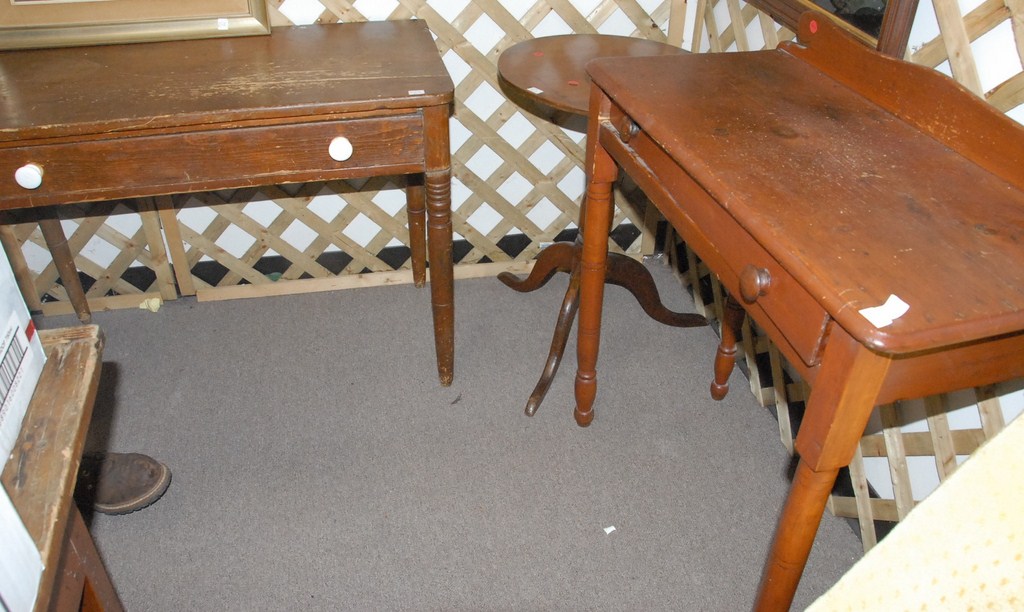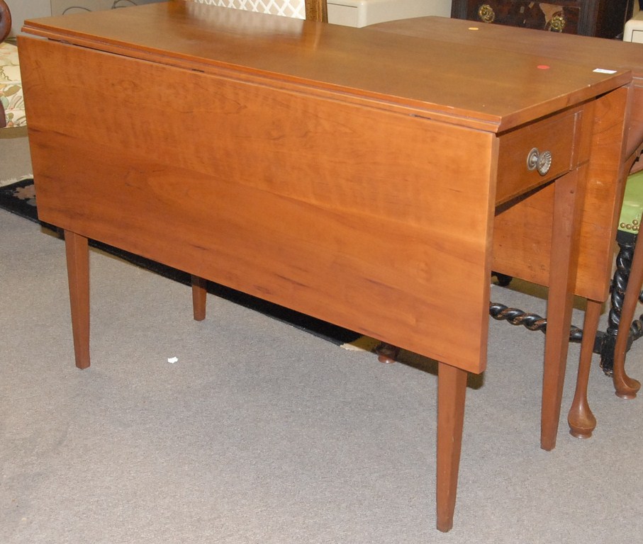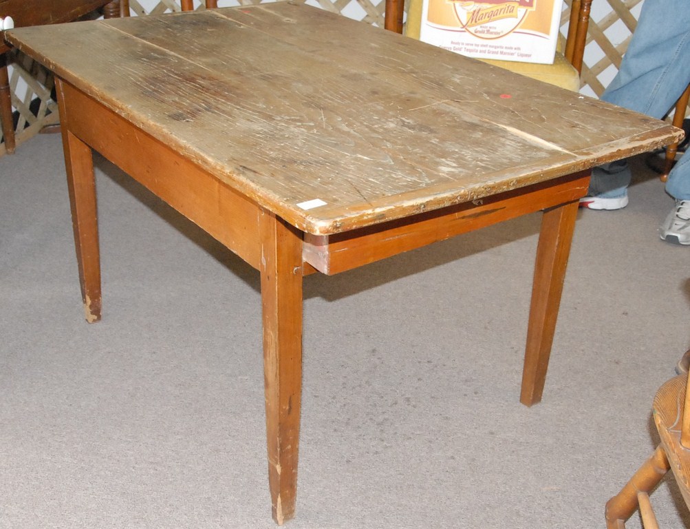 Primitive pine drop leaf table and primitive ladder-back rocker.
