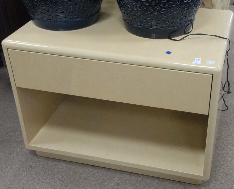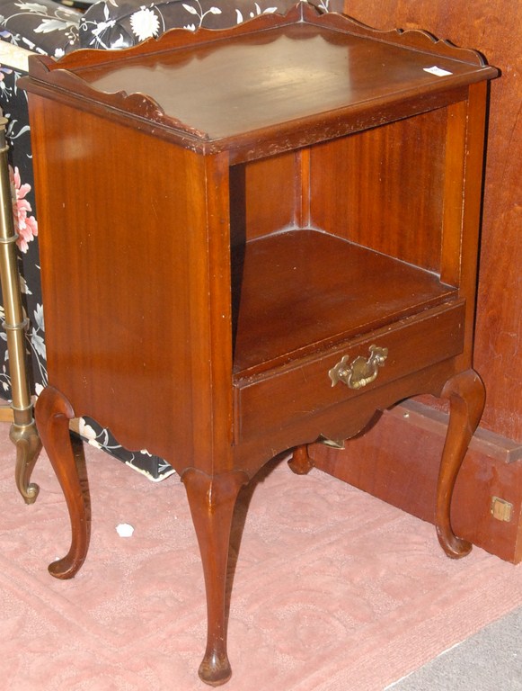 Pair of Fineberg night tables with one drawer each in need of refinishing.