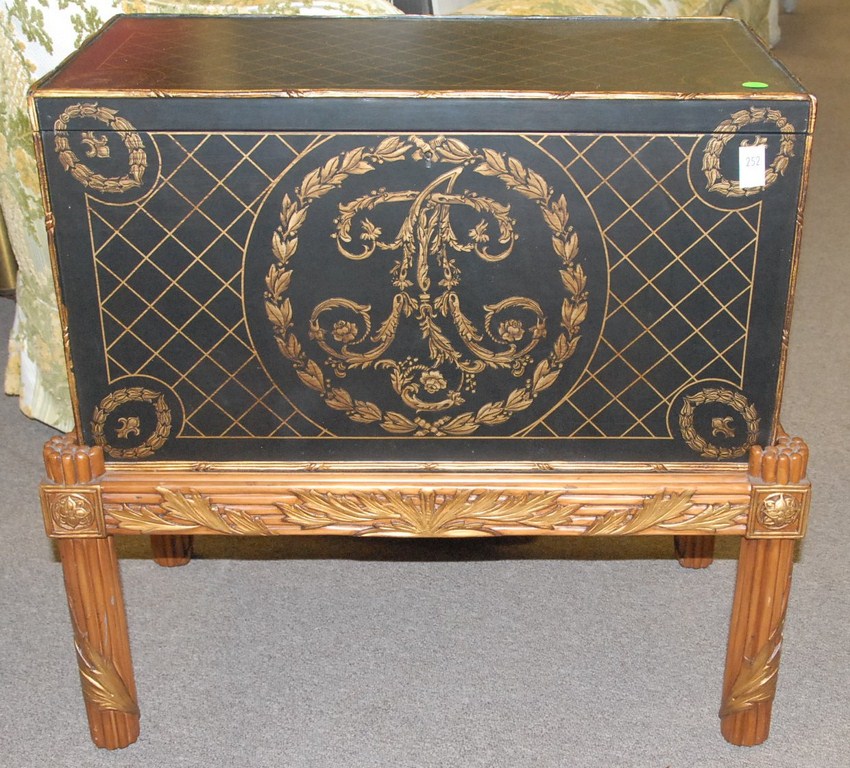 Painted lift top box on stand.