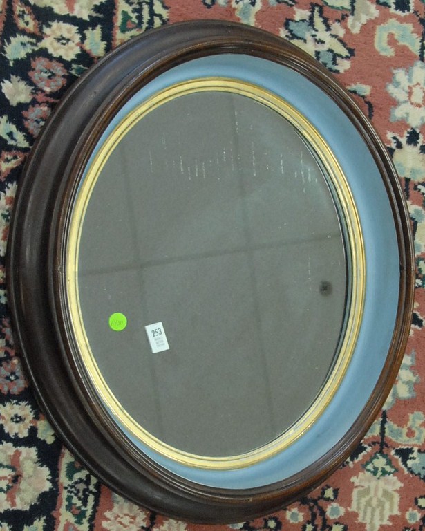 Deep framed walnut Victorian mirror.