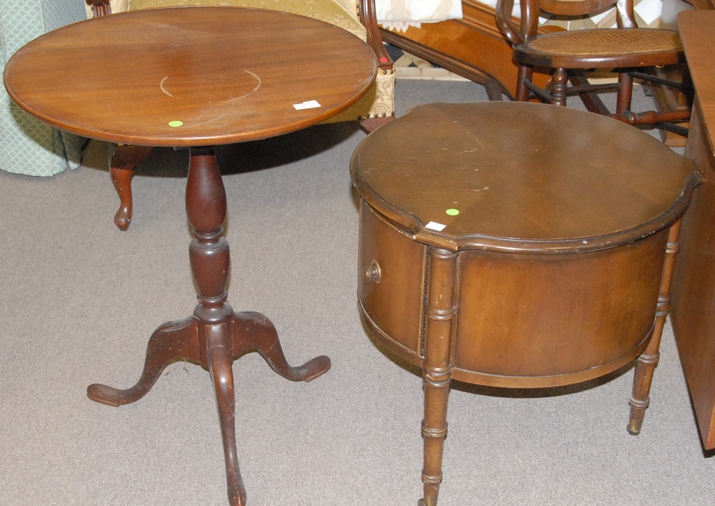 Two piece lot mahogany tip table and round table.