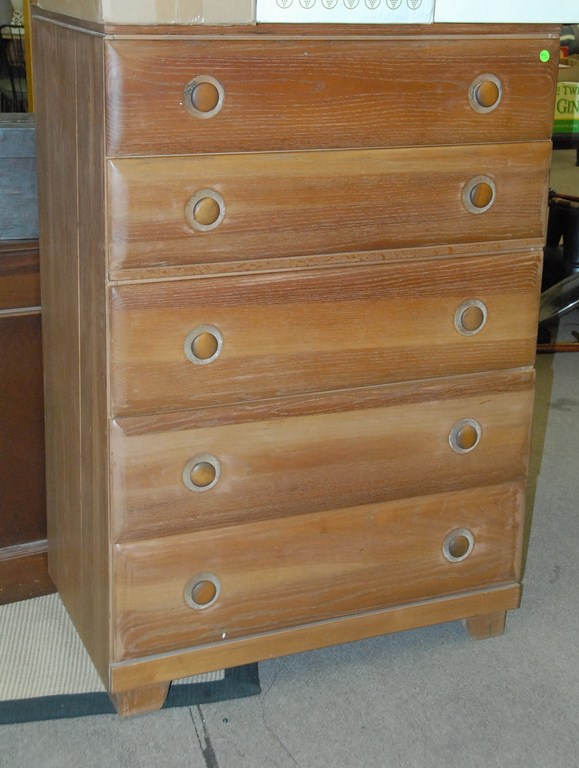 Five drawer oak chest.