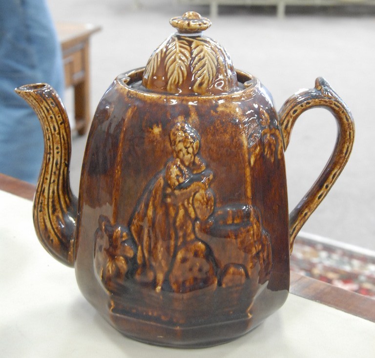 Bennington style coffee pot with cover.