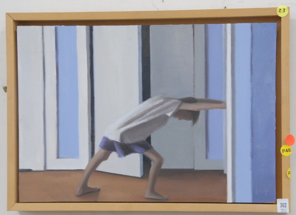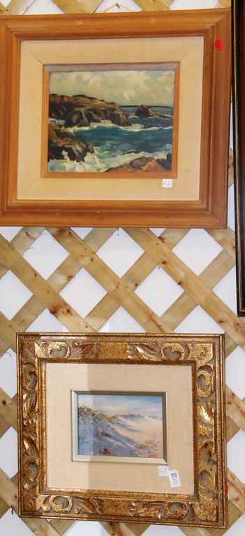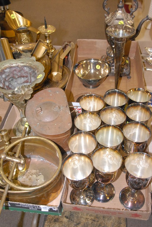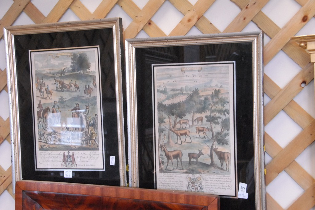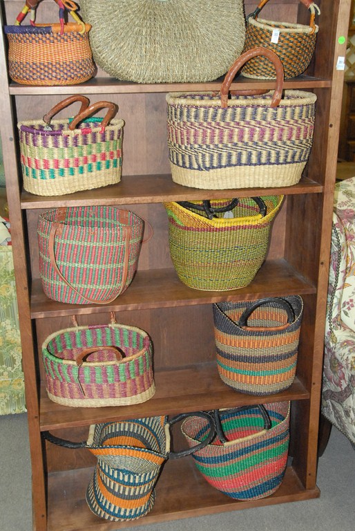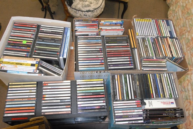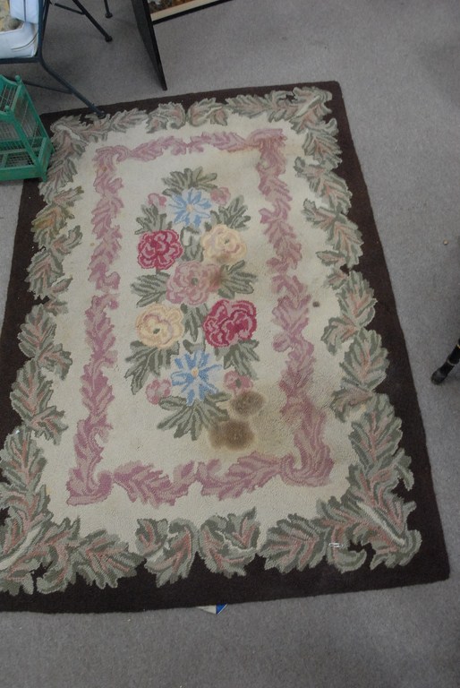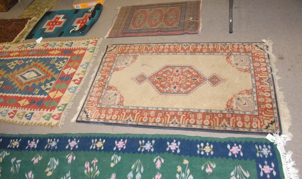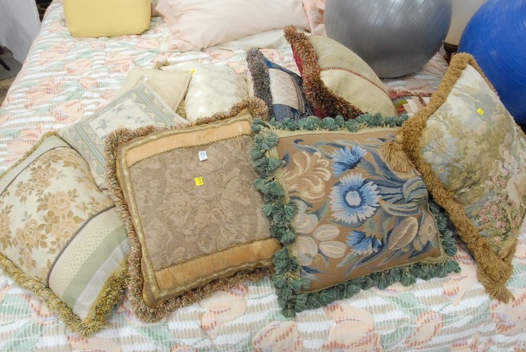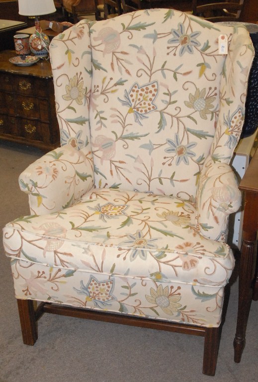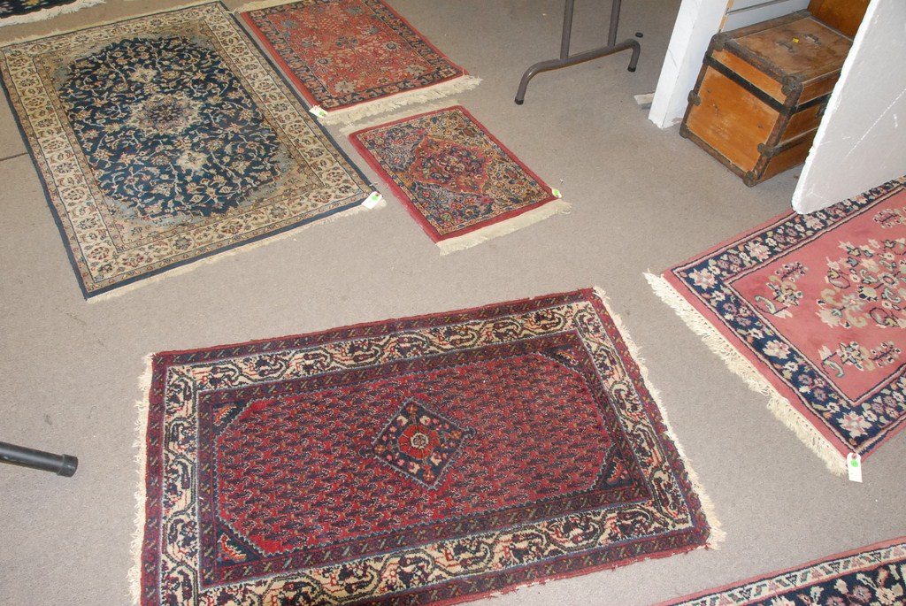 Group lot side chair, outdoor chairs, outdoor chairs, walker, two floor lamps, small bookcase, suitcase, trash can, car seat, and cherry, and Hitchcock bench.