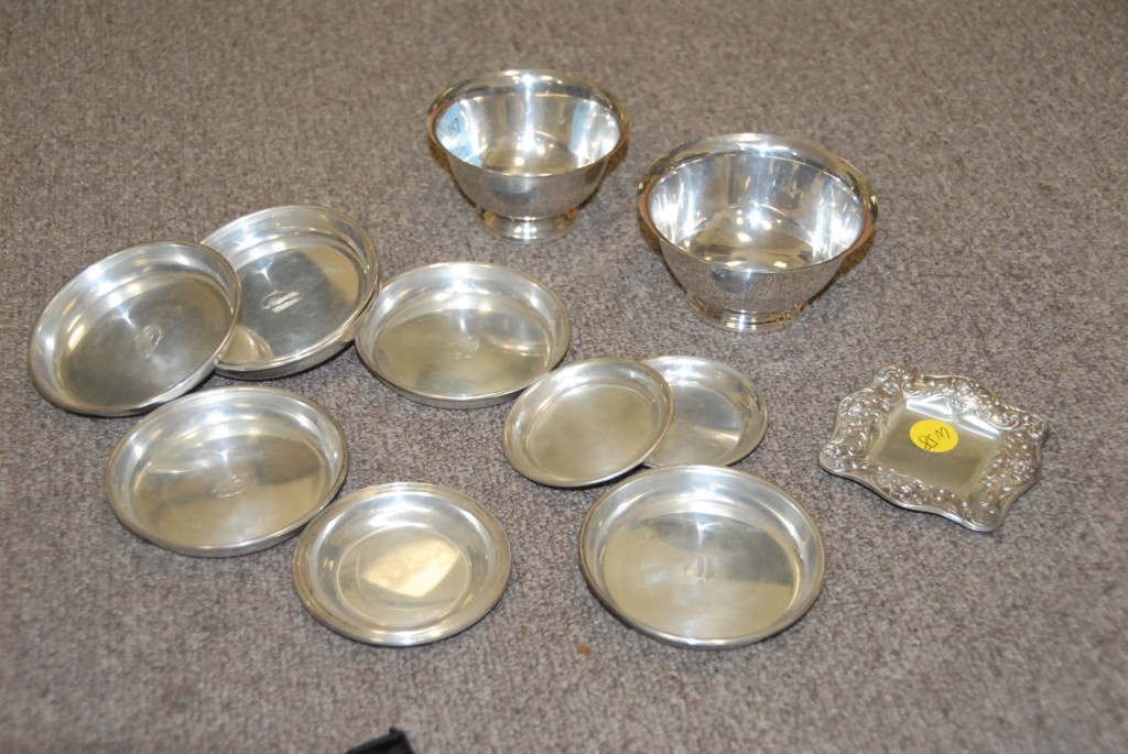 Group of sterling silver small dishes and coasters, 16.2 troy ounces.