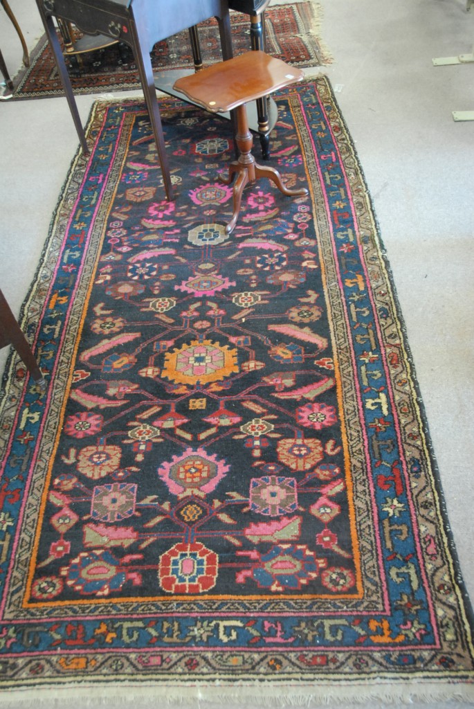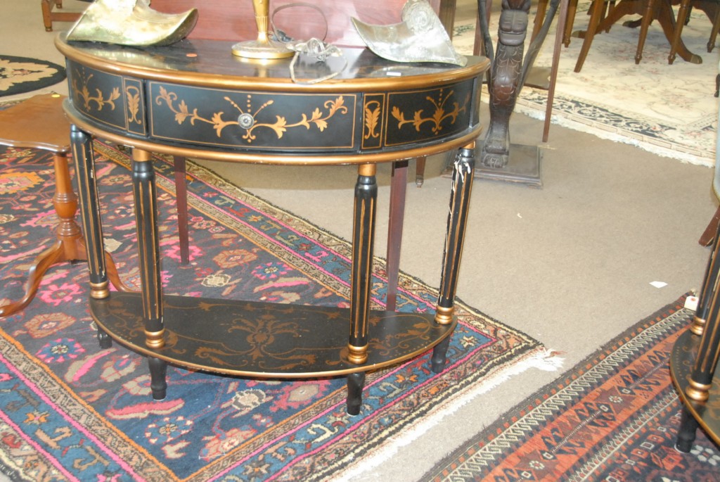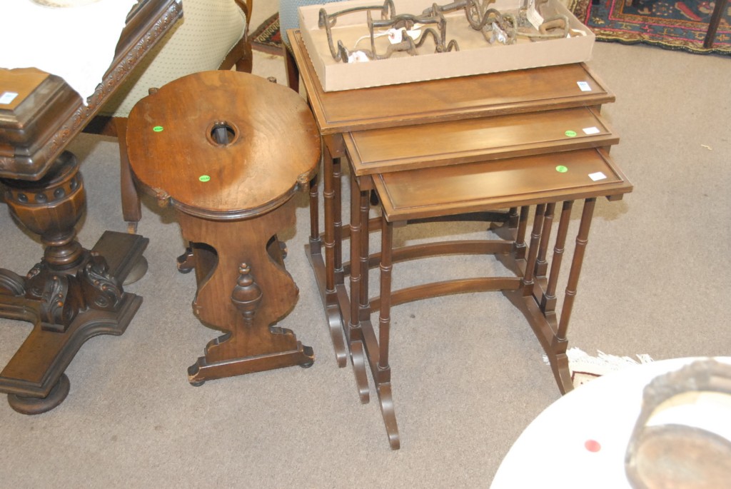 Nest of three mahogany Georgian style tables and a small walnut table.