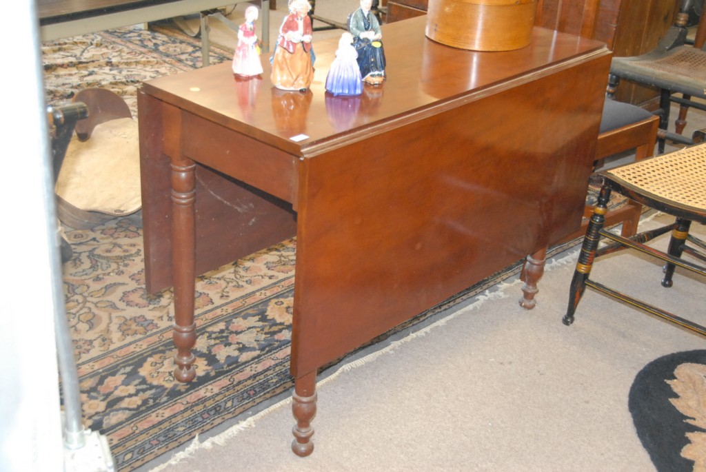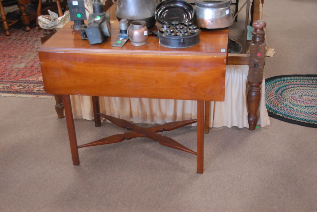 Chippendale cherry drop leaf table with stretcher base and drawer, circa 1780.