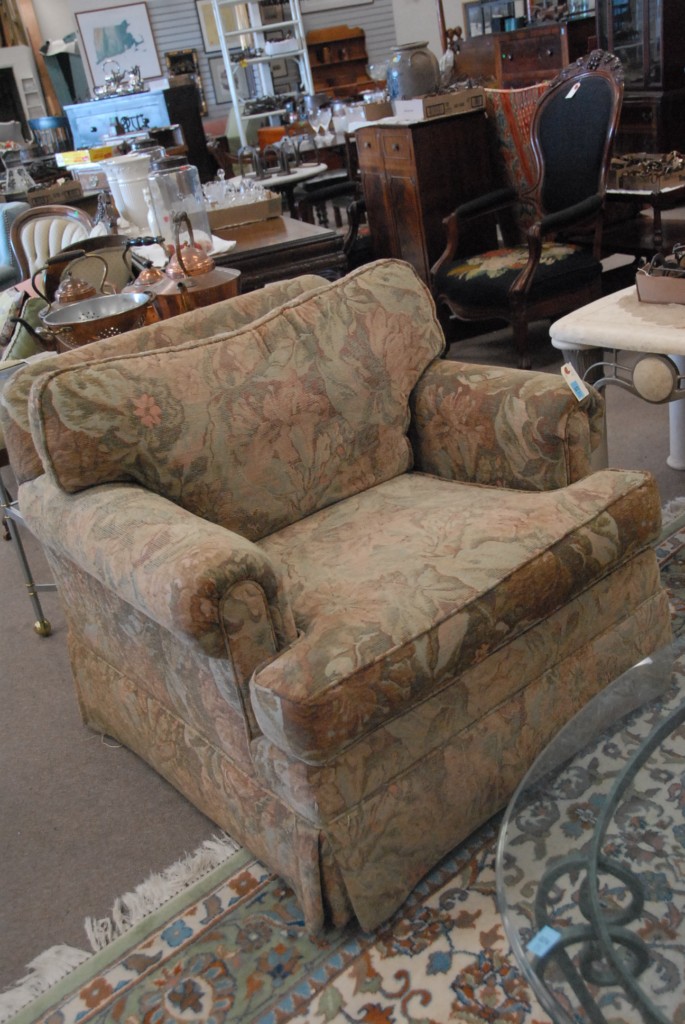 Pair of Ethan Allen tapestry upholstered easy chairs.