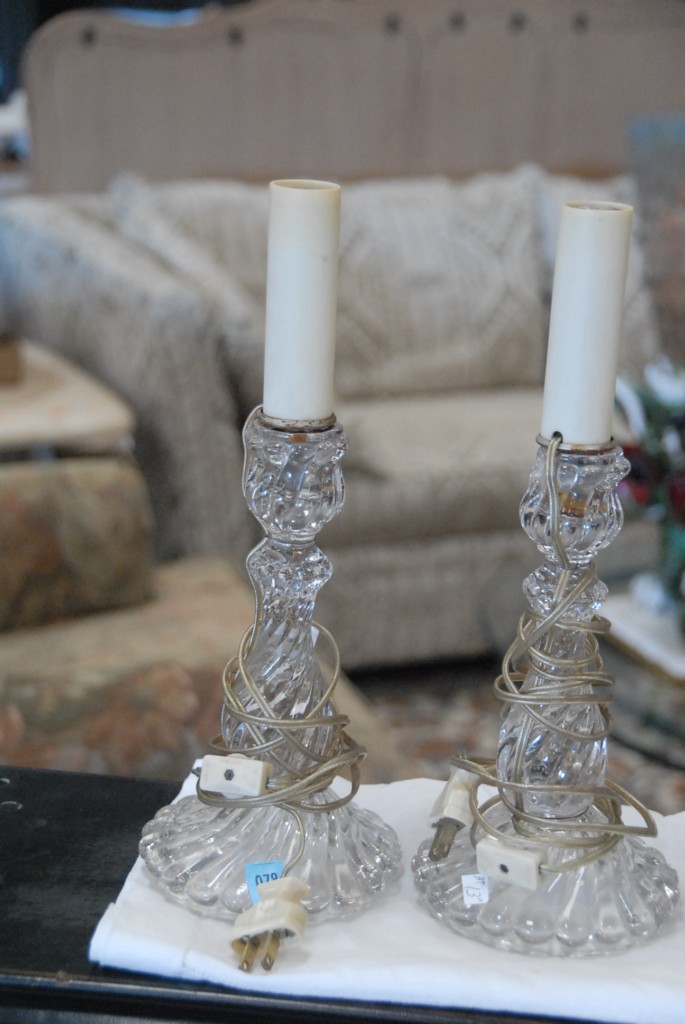 Pair of Baccarat candlesticks, electrified, not drilled.