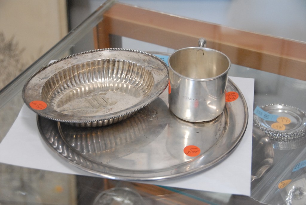 Three sterling silver pieces bowl, cup, and plate, 16.2 troy ounces.