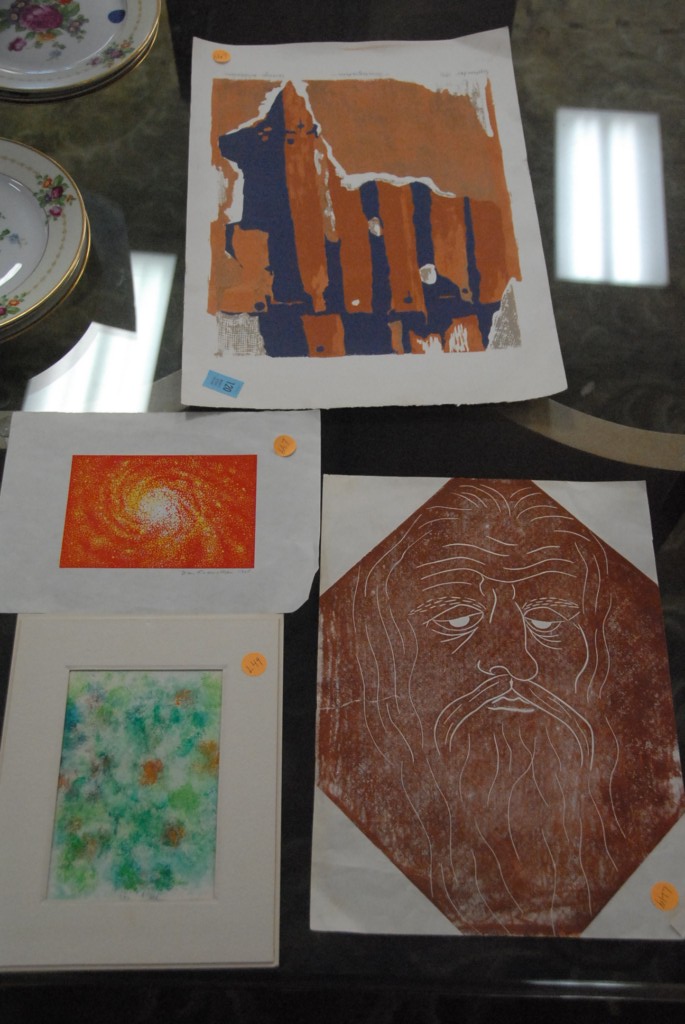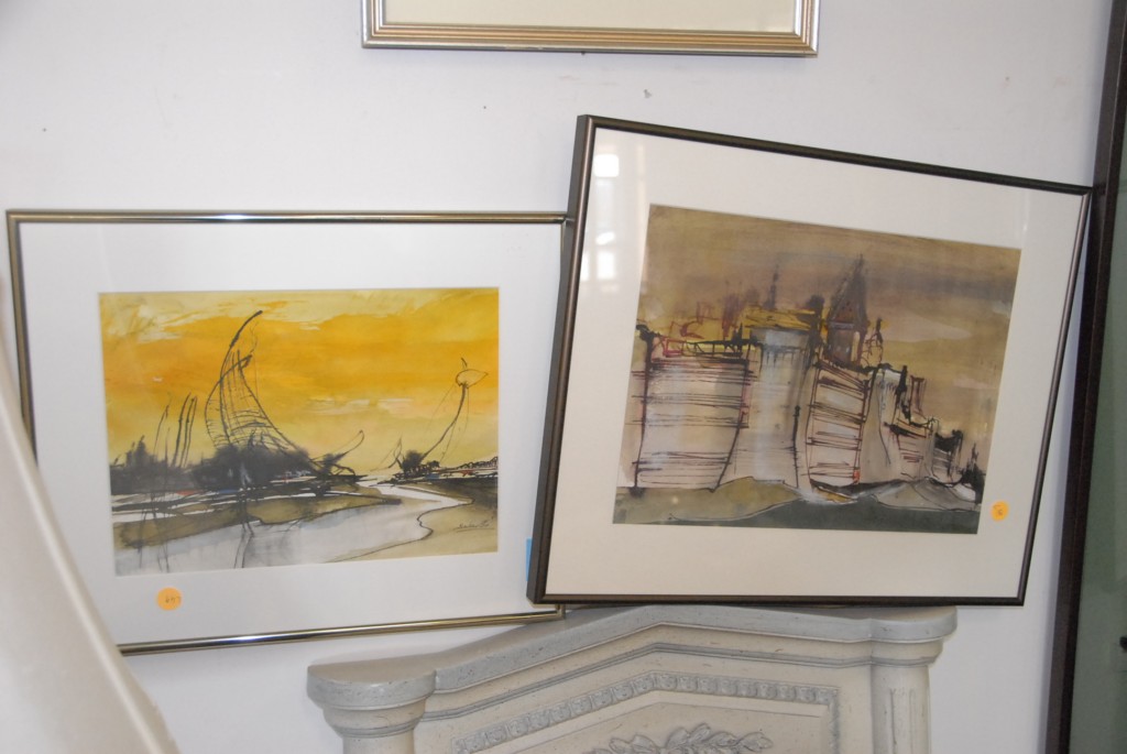 Four unframed prints and watercolors, some pencil signed.