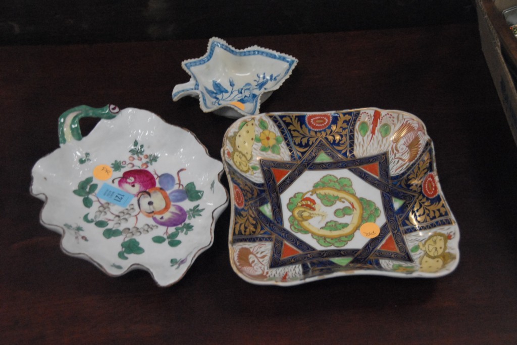 Three piece lot Worcester Chamberlain dish circa 1800 hairline.