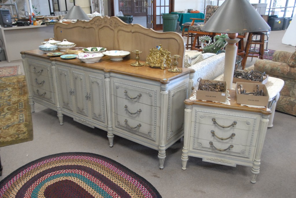 Five piece king size bedroom set chest, headboard, two mirrors and night table.