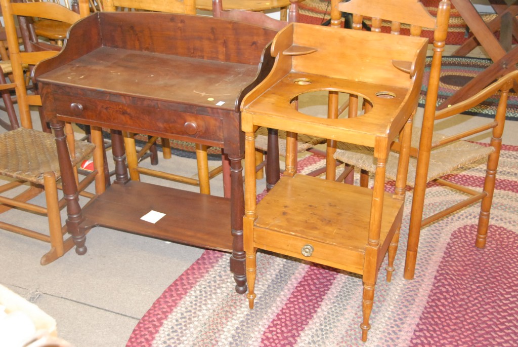 Two wash stands, one mahogany and one pine both with a drawer.