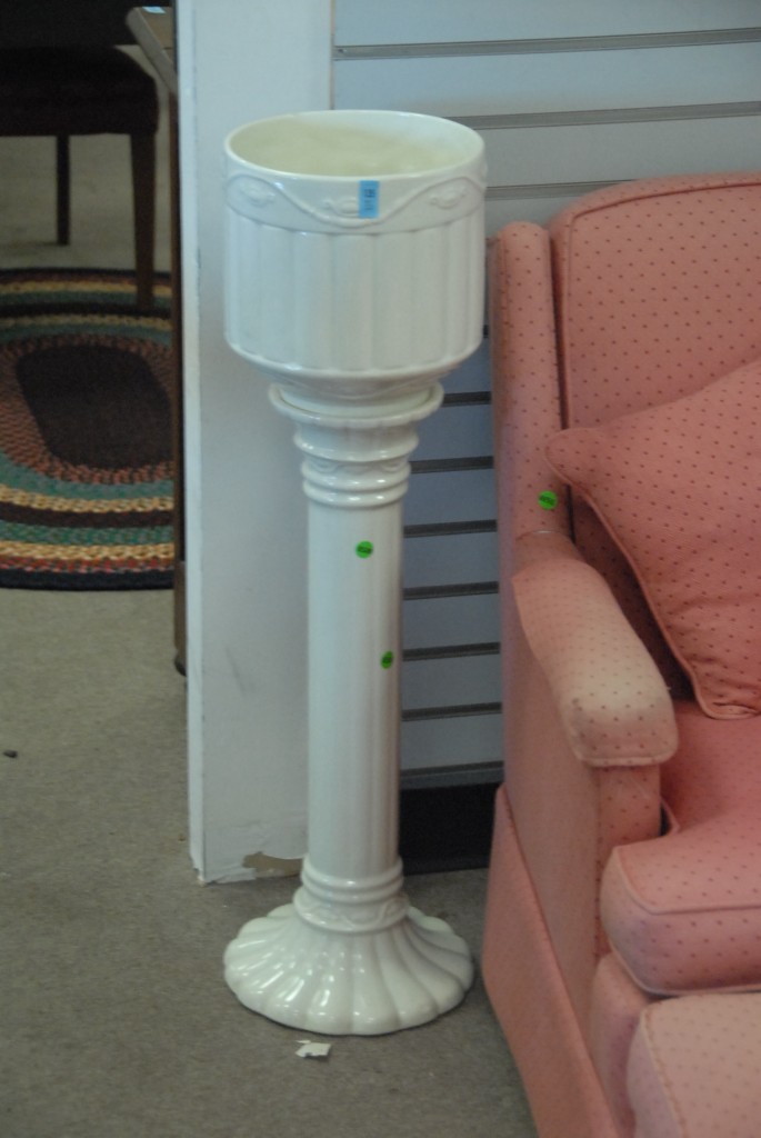 Spanish Majolica jardinire on pedestal.