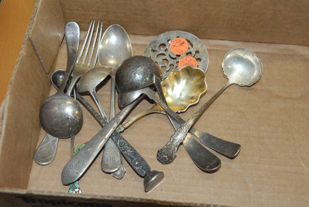 Sterling silver grouping hand hammered ladle, Tiffany piece, and Kirk piece, 10.8 troy ounces.