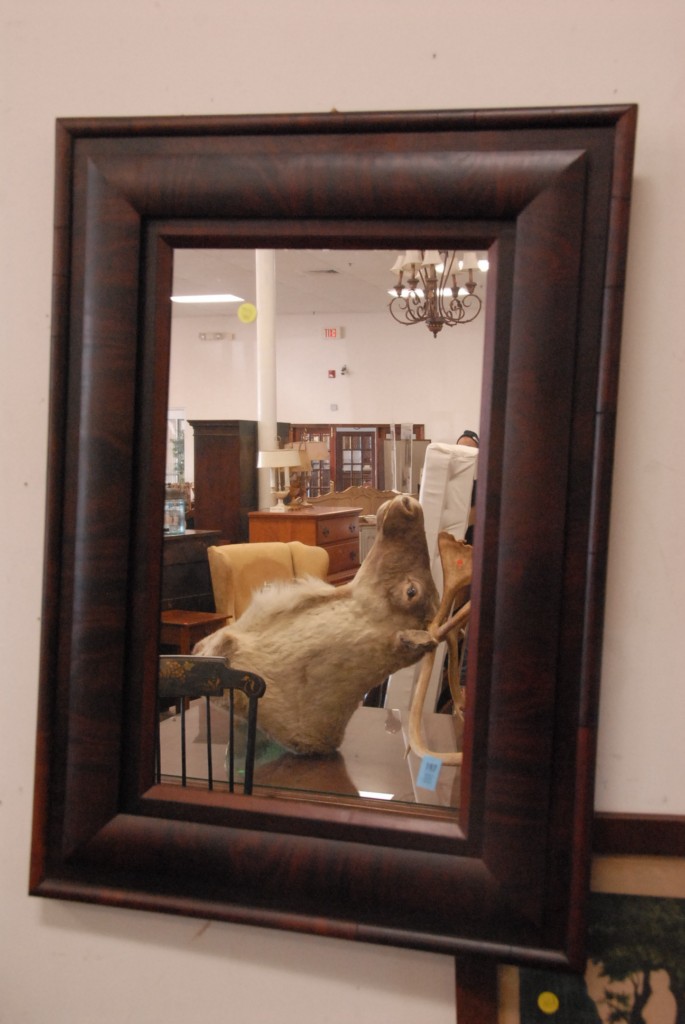 Group lot outdoor chaise, two prints, two mirrors, side chair, and luggage rack.