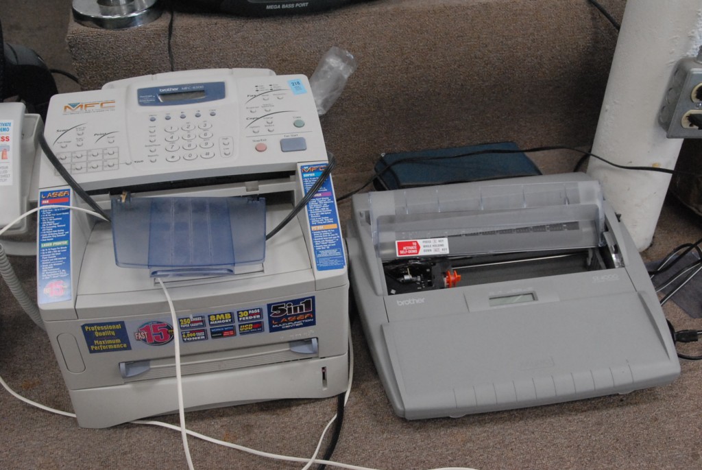 Brother MFC8500 scanner printer fax copier machine along with typewriter.