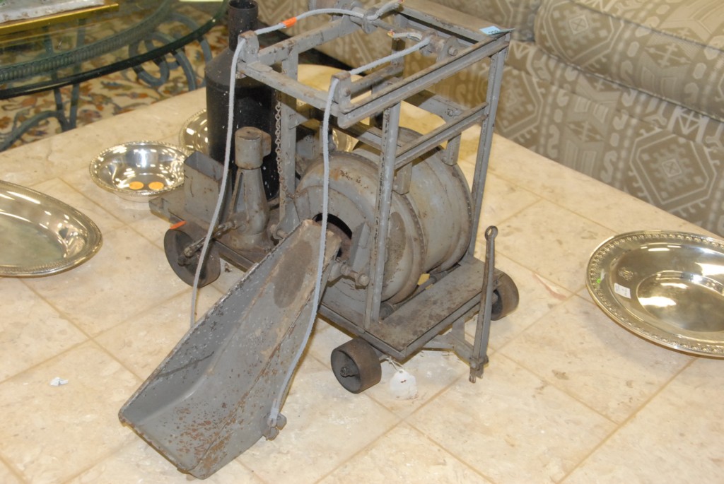 Vintage 1920’s Buddy L construction cement mixer with original Buddy L decal in grey paint.