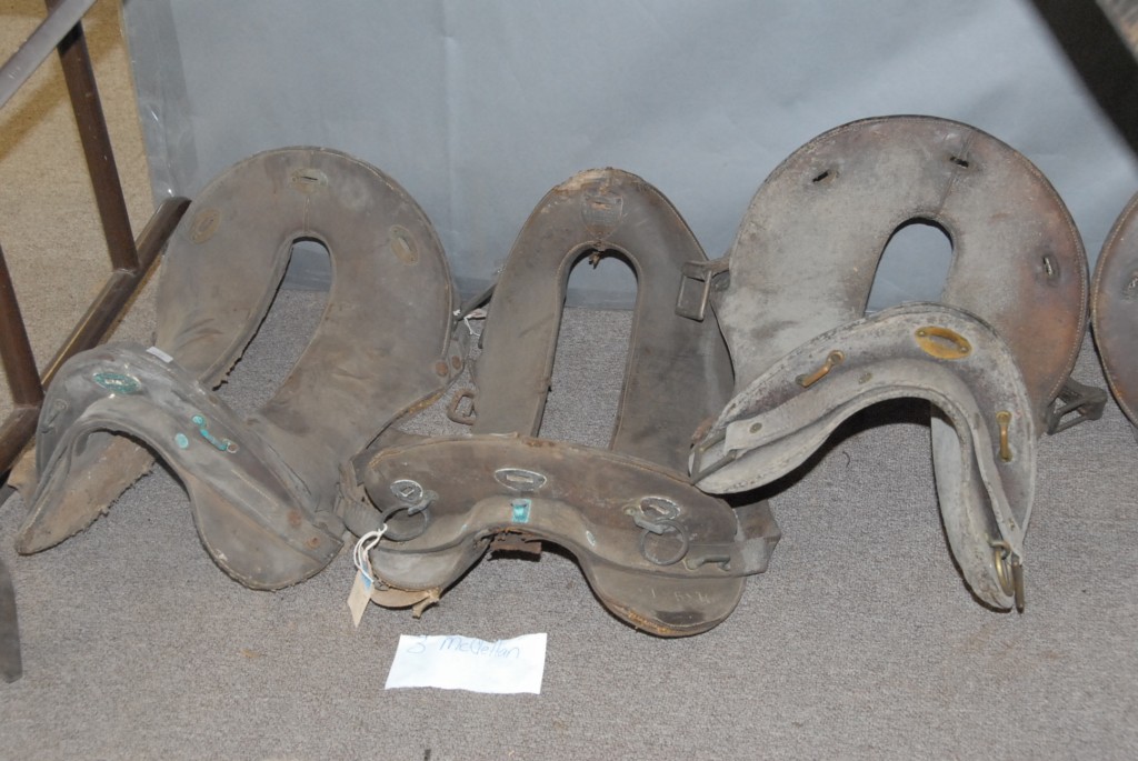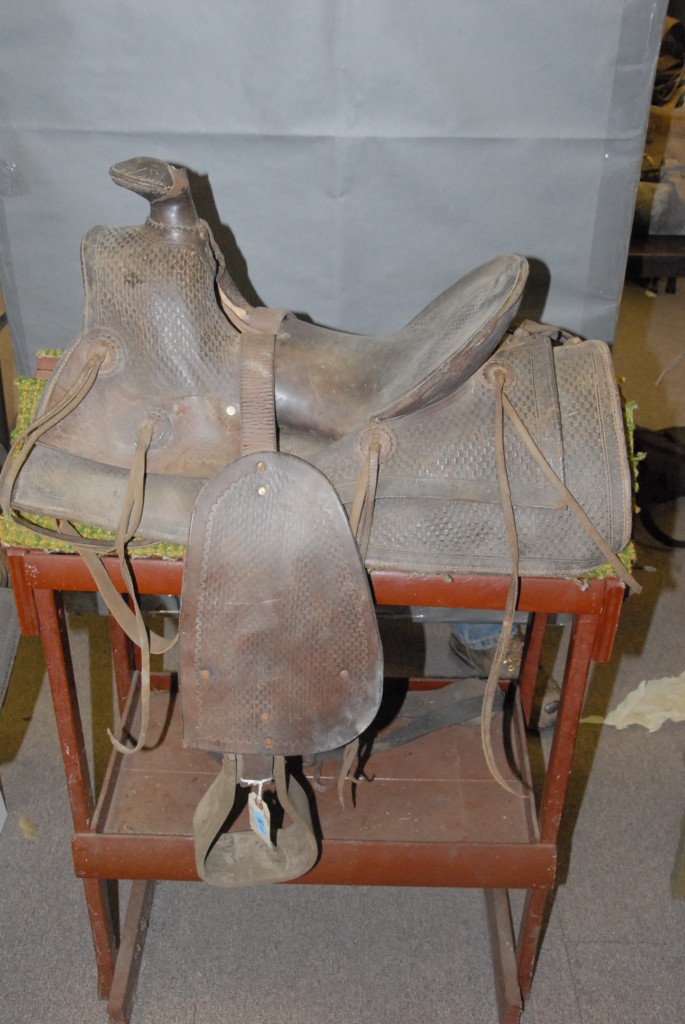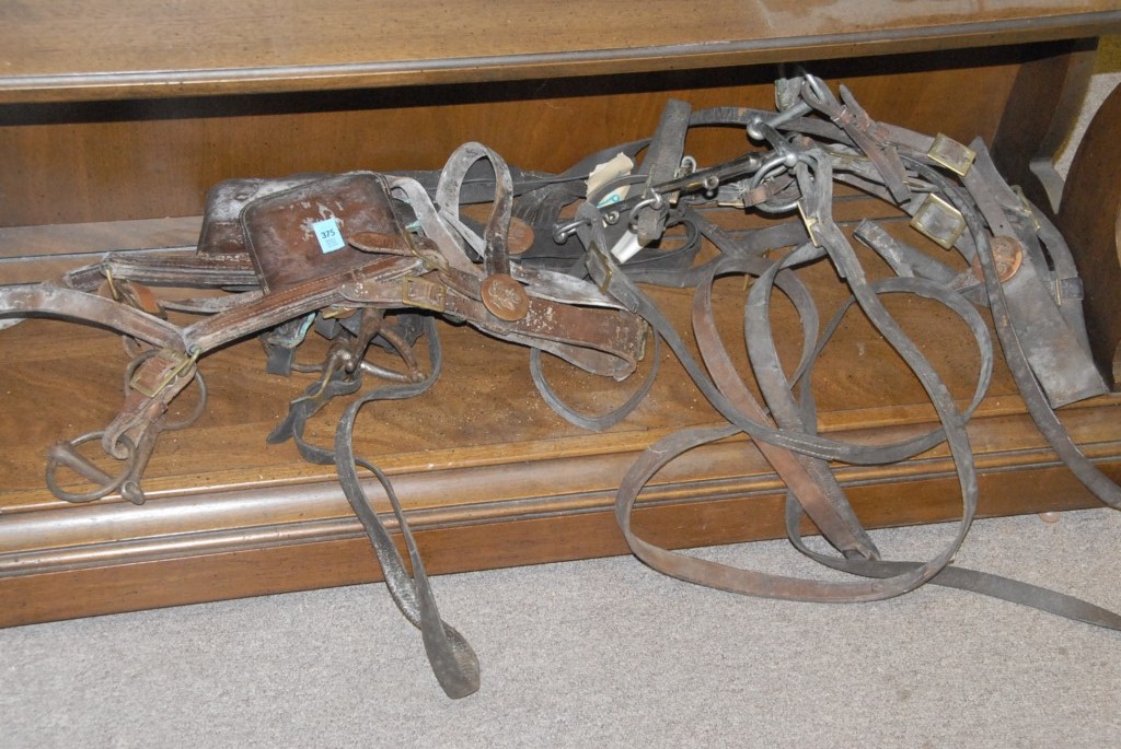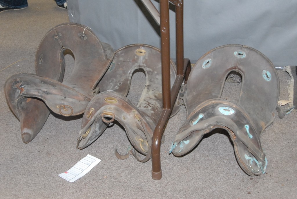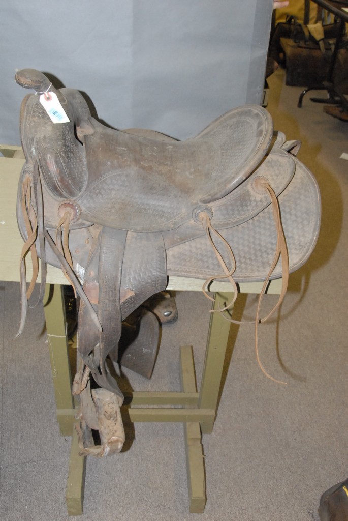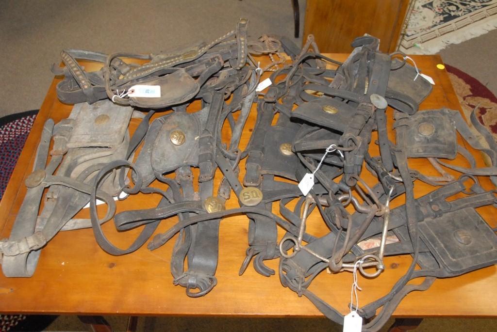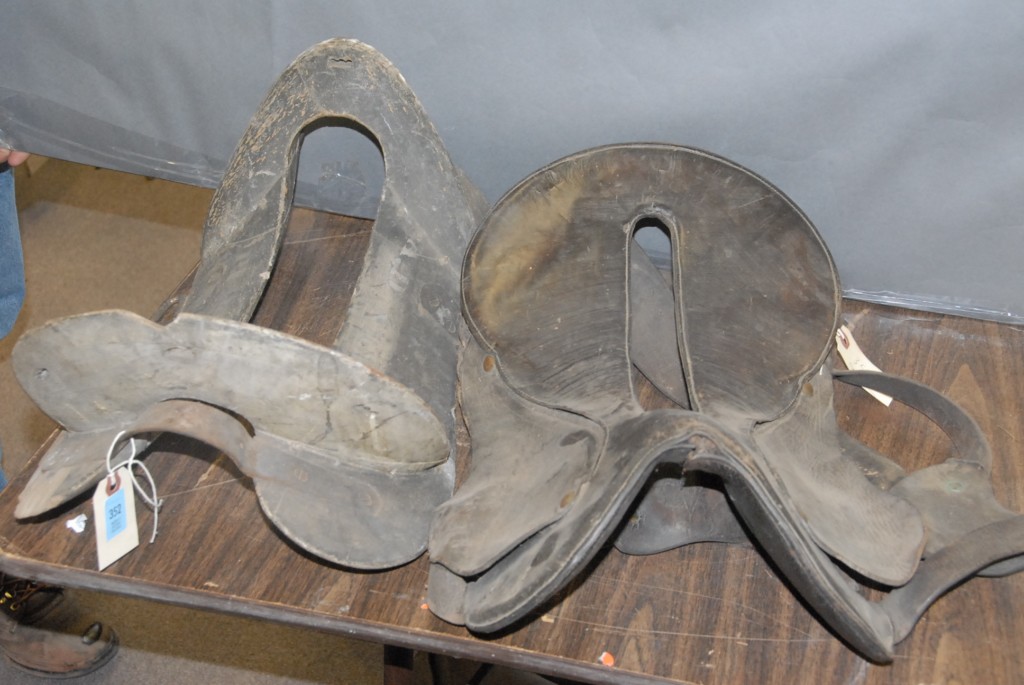 Horse riding gear to include two English riding saddles one marked Stubben along with a custom wooden lift top box with bridles and cleaning accessories and horse blankets