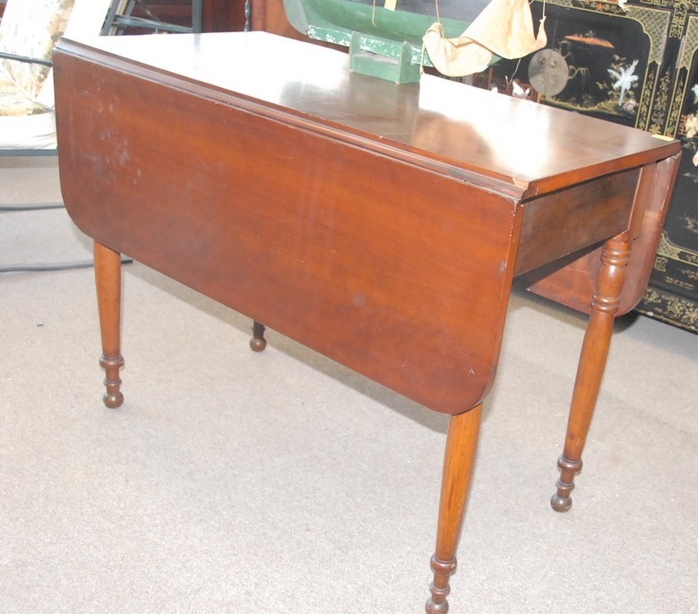 Cherry Sheraton drop leaf table, circa 1830.