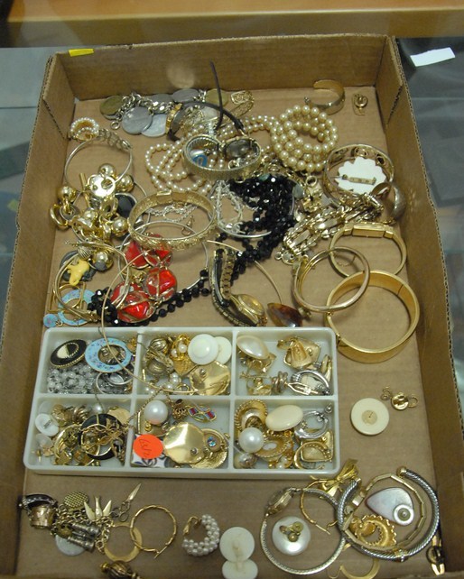 Box of costume jewelry David Yerman bracelet