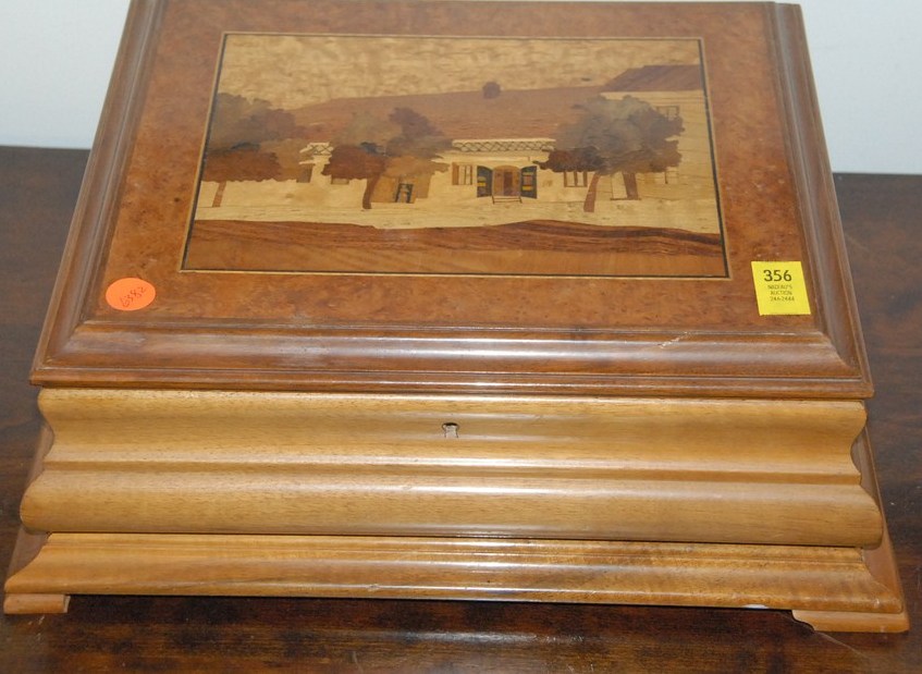 Lift top box with inlaid top.