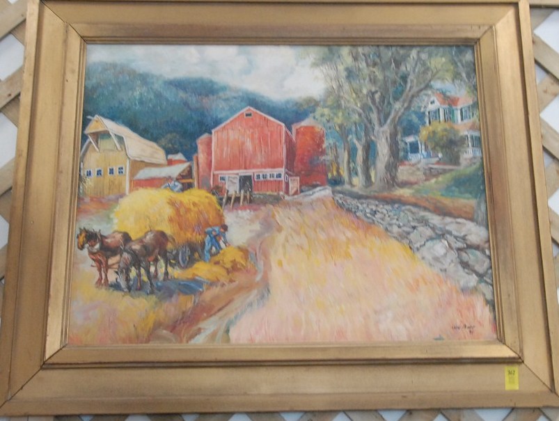 Oil on board Haying signed lower right Geo Baer 41.