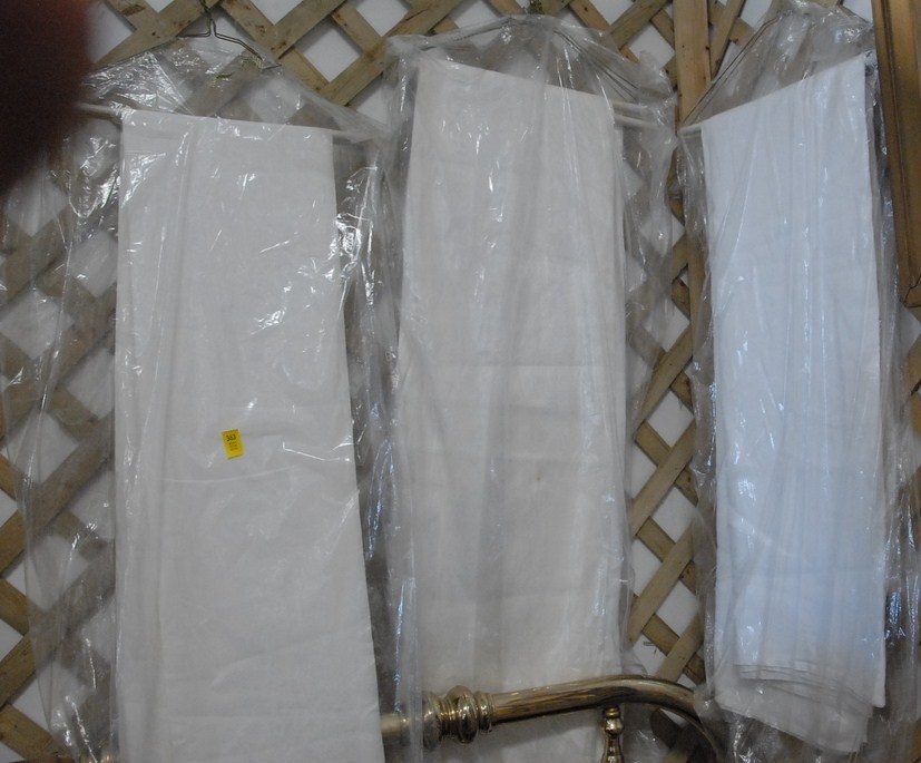 Three white linen table clothes.