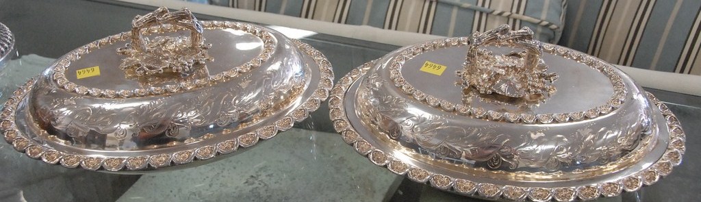 Pair of silverplate covered vegetable dishes.