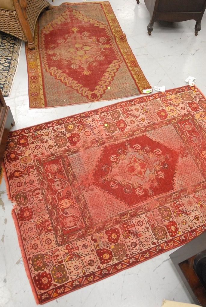 Two Oriental rugs mat 1’6 x 2’4 and Turkish rug 3’x4’4. Provenance: Estate of Judy Gengras McDonough of West Hartford, CT.